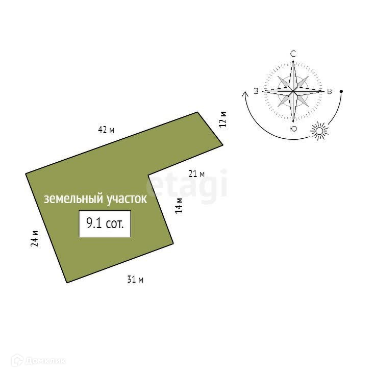 Площадь участка 9.1 сот.