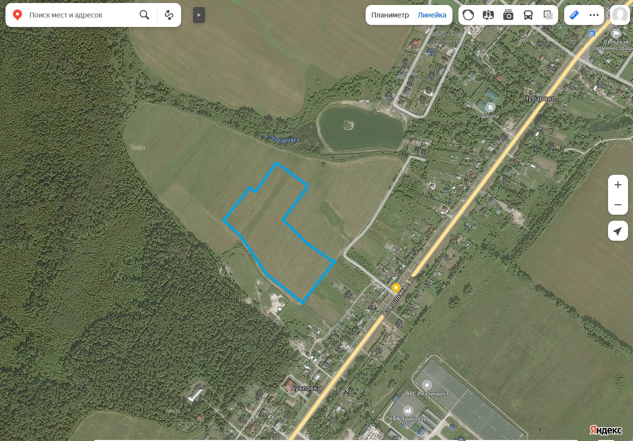 4 участка общей площадью 4 га на второй линии жилой деревни (40:07:011501:600, 40:07:011501:601, 40:07:011501:602, 40:07:011501:604).