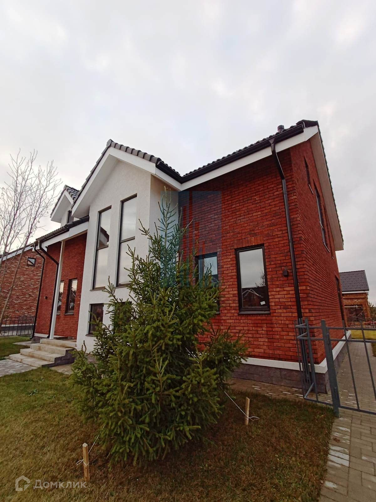 Дом в коттеджном поселке бизнес-класса площадью 230 кв.м. на 6 сотках. Функциональная планировка (может быть изменена под ваши потребности): кухня-гостиная, 4-6 спален, 3 с/у. На первом этаже видовые окна, камин, выход на террасу во двор. Облицовка фасада кирпичом, кровля – черепица. Водоснабжение, канализация, свет 8кВт заведены в дом, газ подведен к дому, межевой забор h1,2м, одно парковочное место (брусчатка), участок выровнен и застелен рулонным газоном.