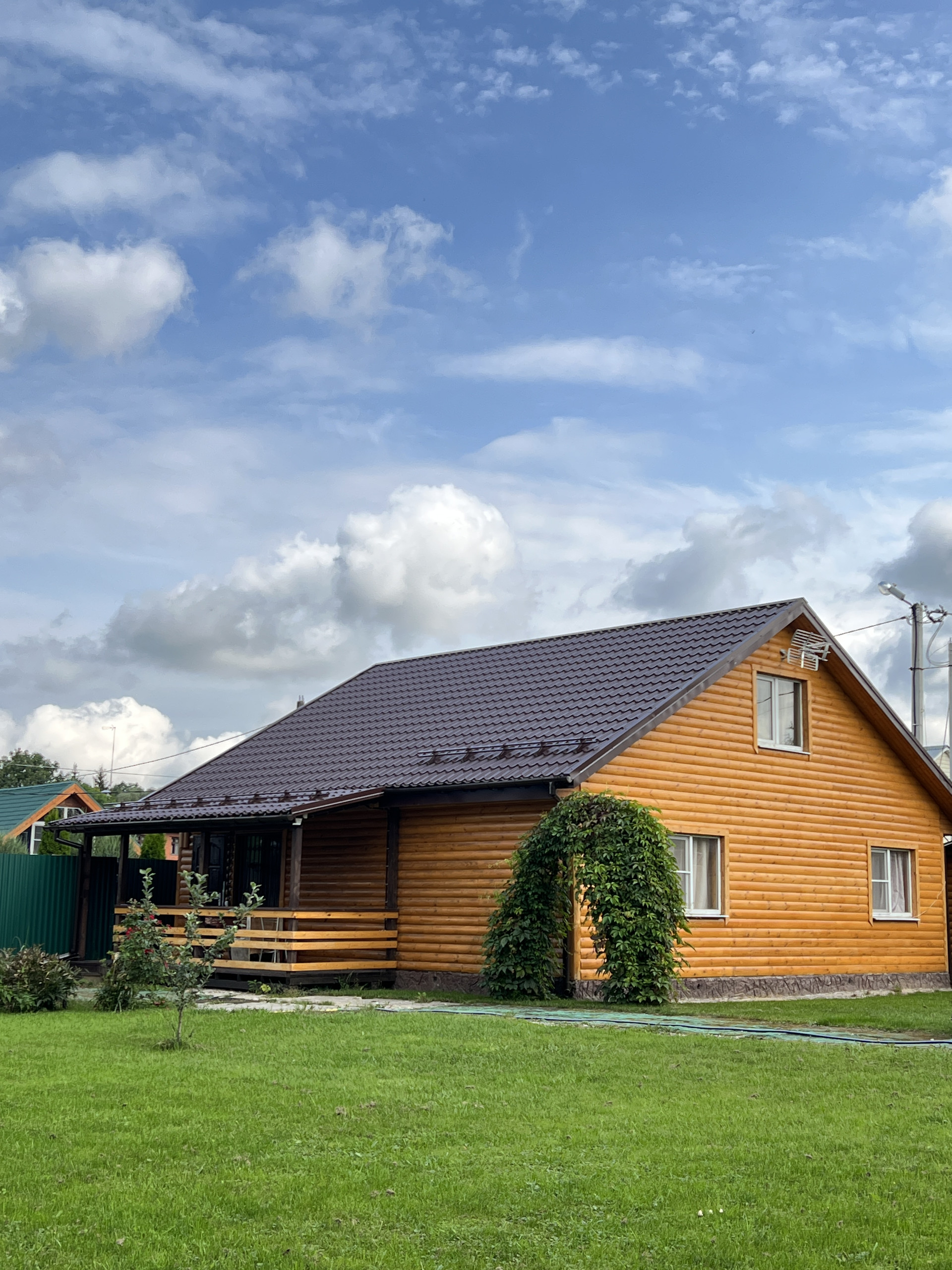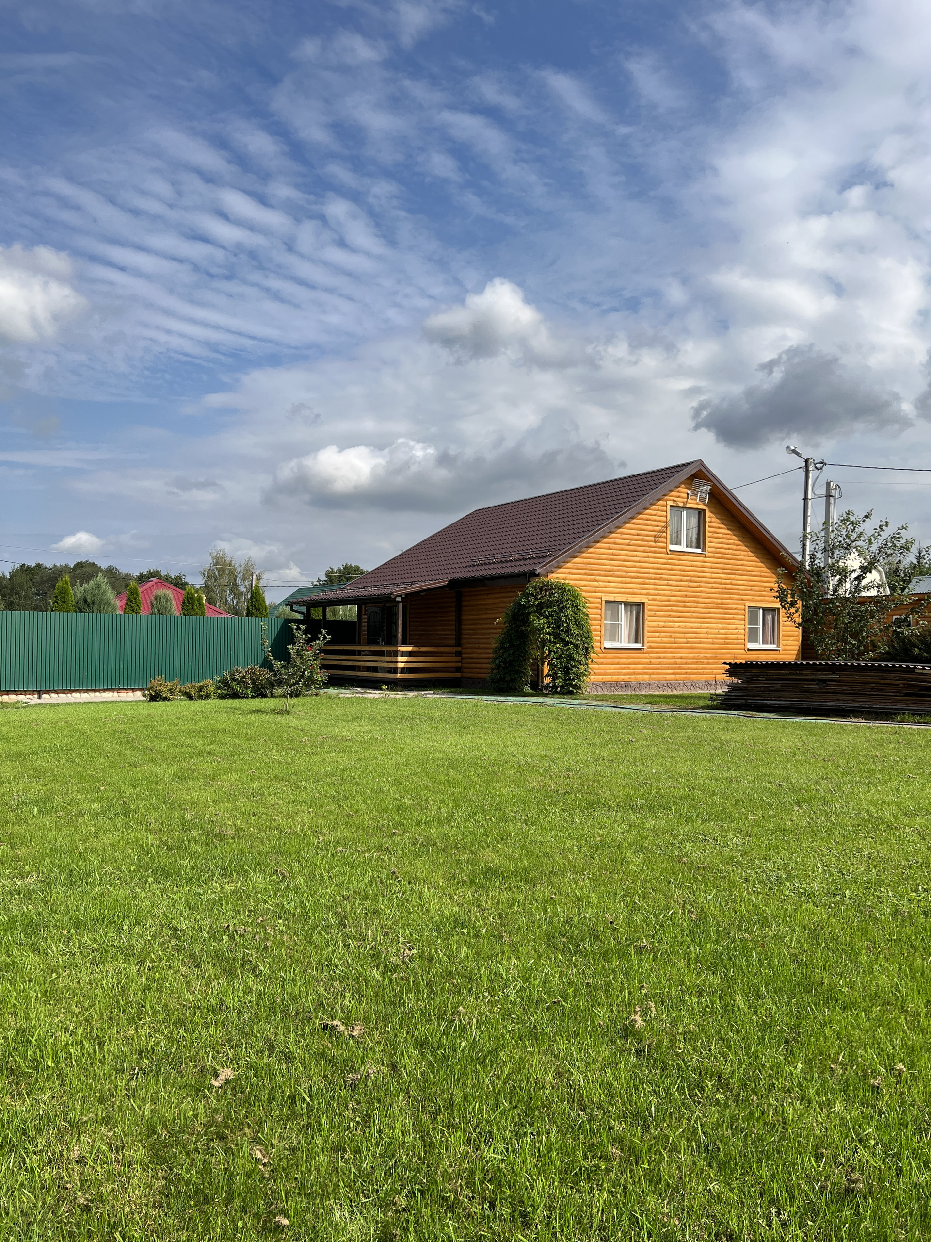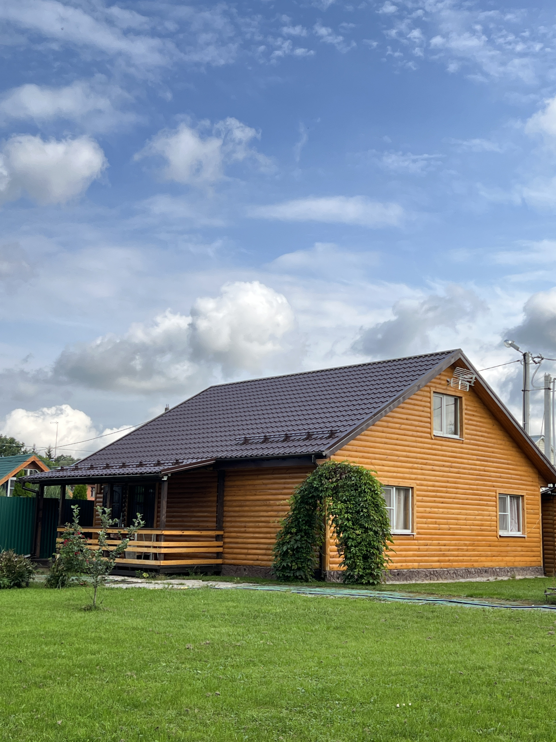 Дом каркасный, обшит блок-хаус. Полностью утеплен.