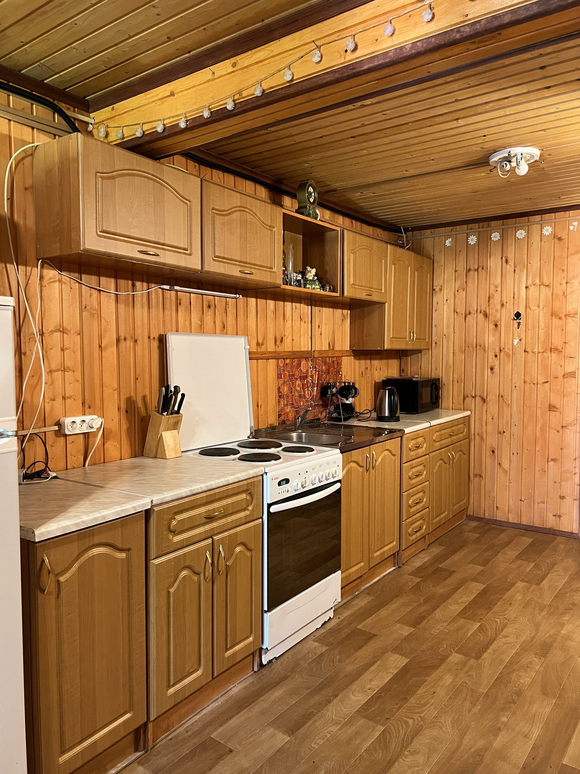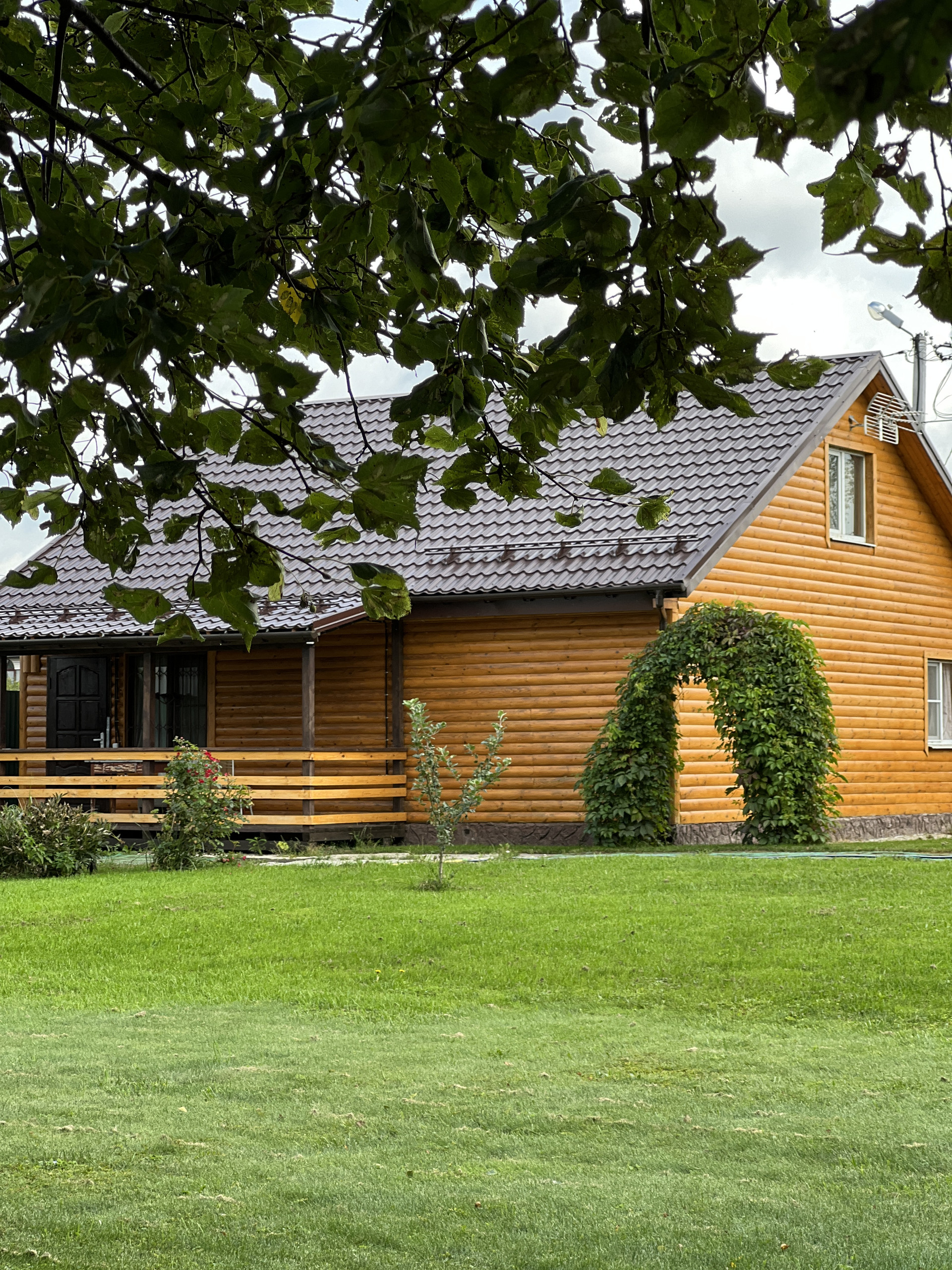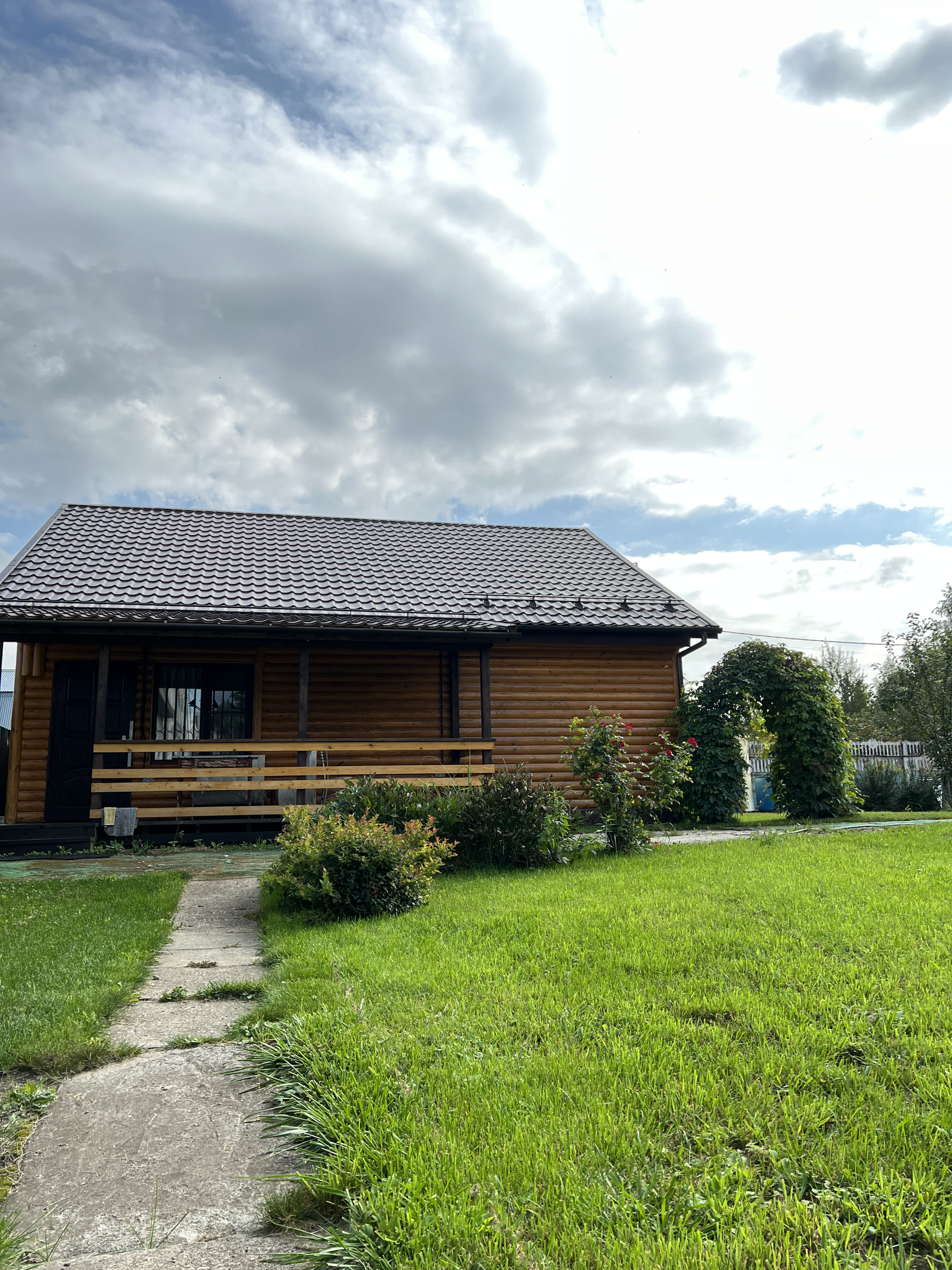 Дом каркасный, обшит блок-хаус. Полностью утеплен.