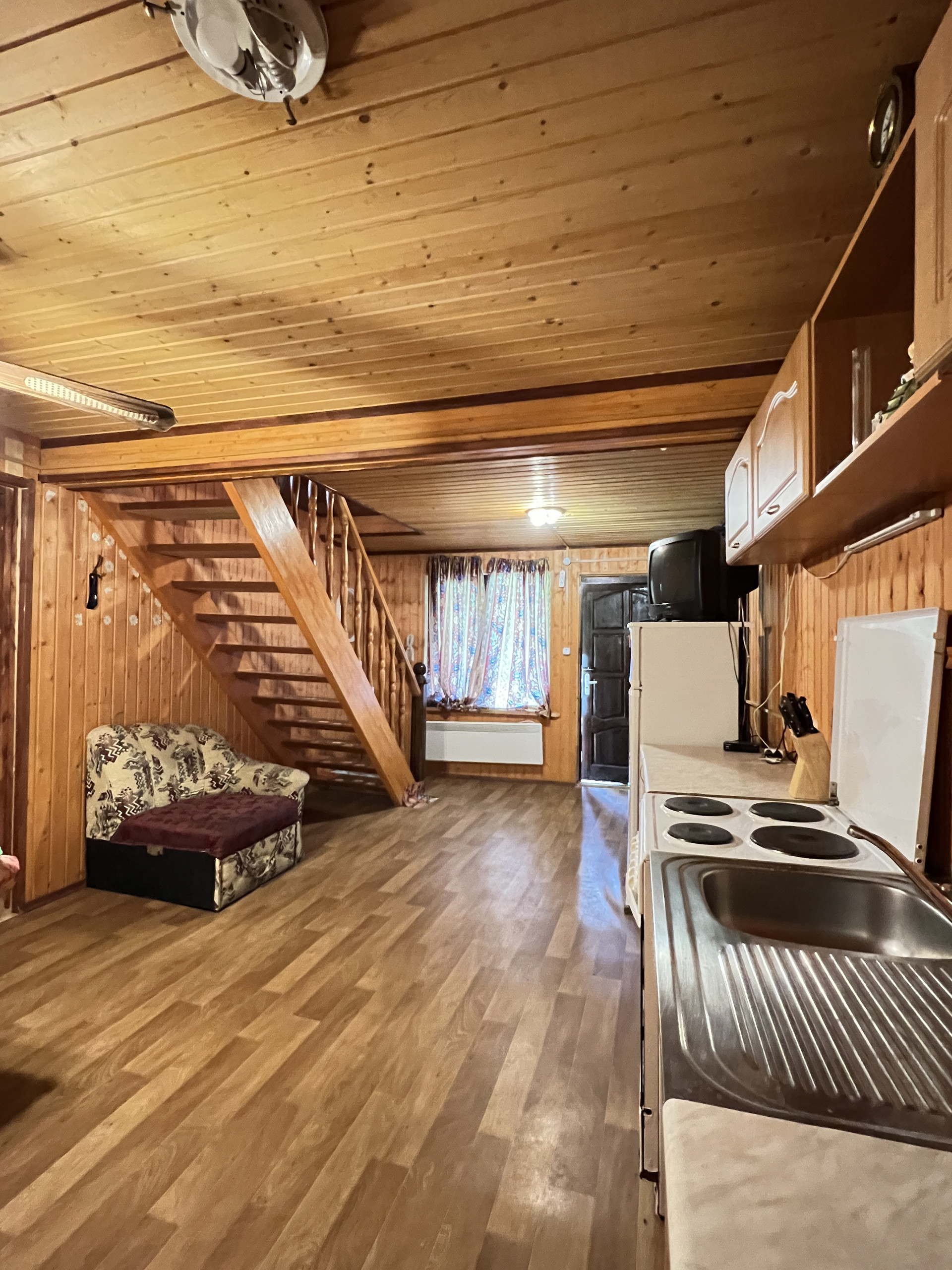 Первый этаж: кухня-гостиная, 3 спальни, санузел (душевая кабина).