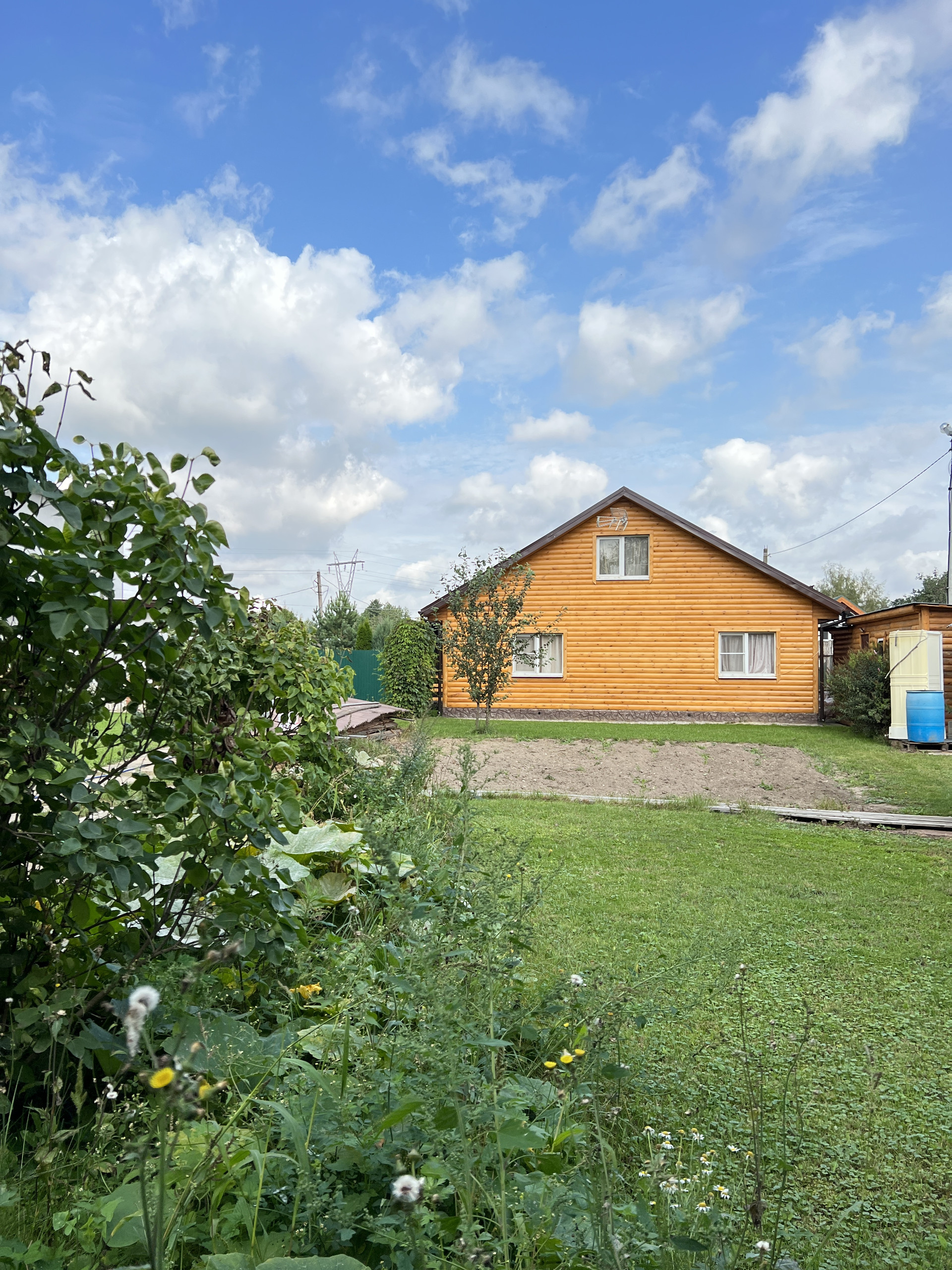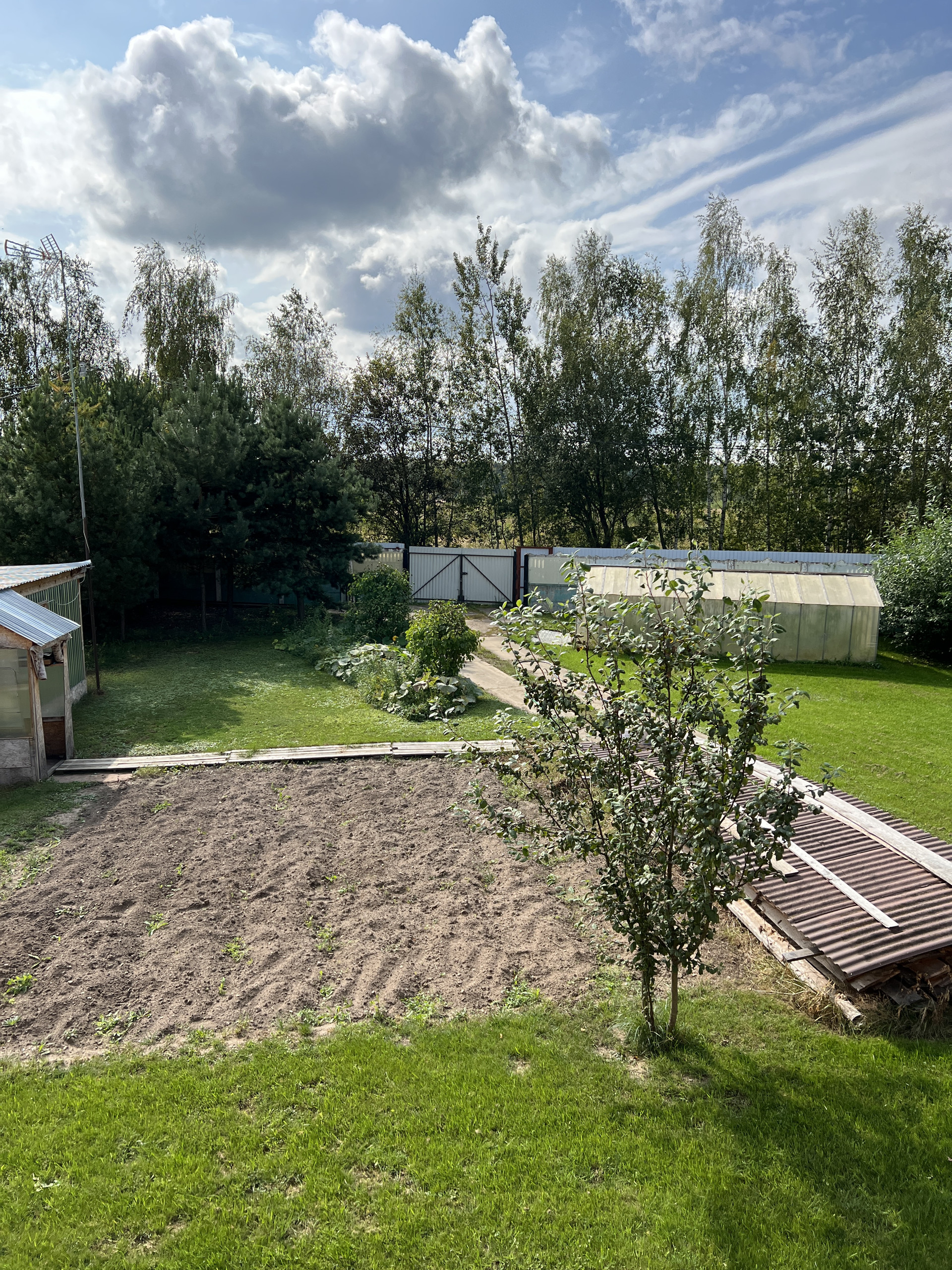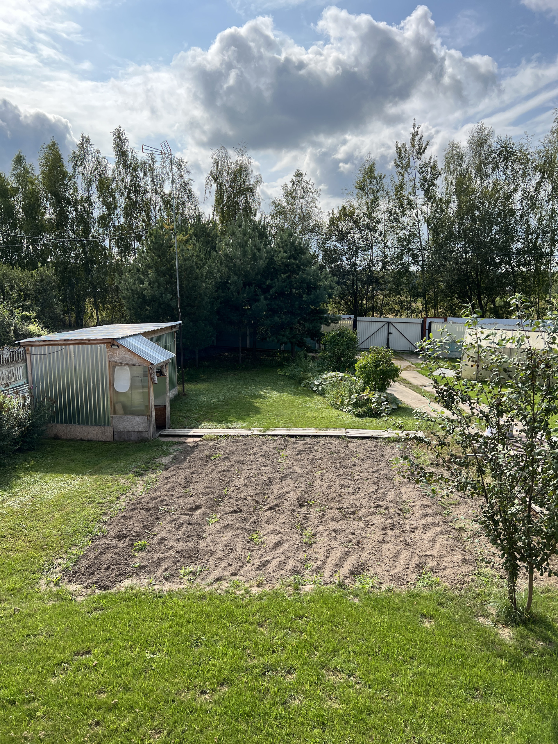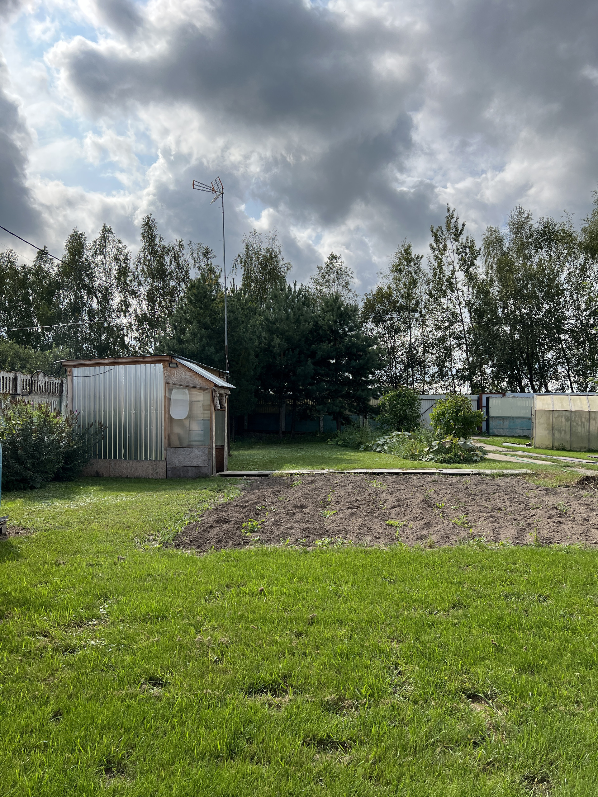 Есть небольшой хоз. блок, теплица, огород.