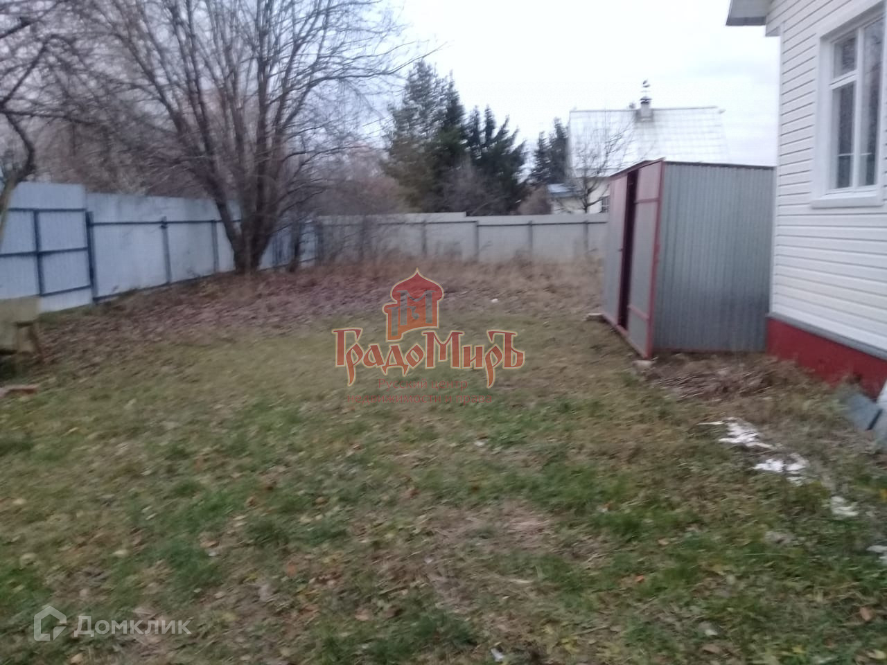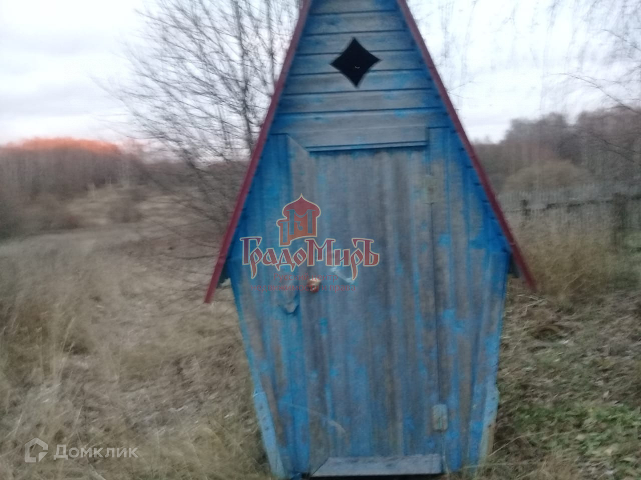 Участок 30 соток прямоугольной формы. С трёх сторон огорожен. В глубине участка расположен дополнительный уличный туалет. Передний забор - металлопрофиль (есть калитка и въездные ворота).