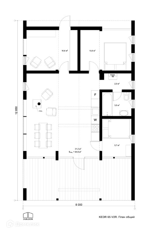 Кухня гостиная имеет выход на крытую террасу площадью 24 м2,