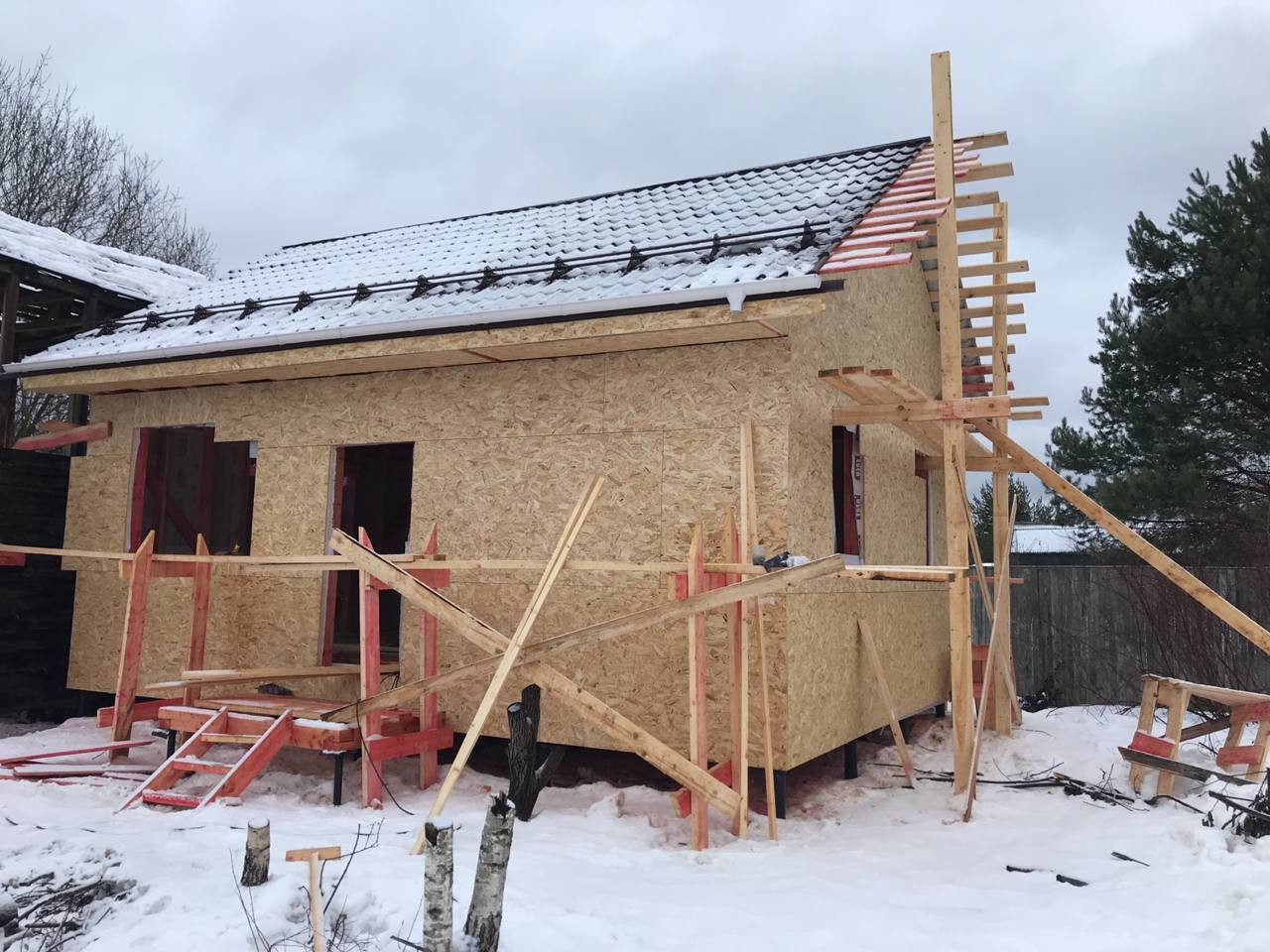 Площадь дома: 44 м2 первый этаж, 35 м2 второй.