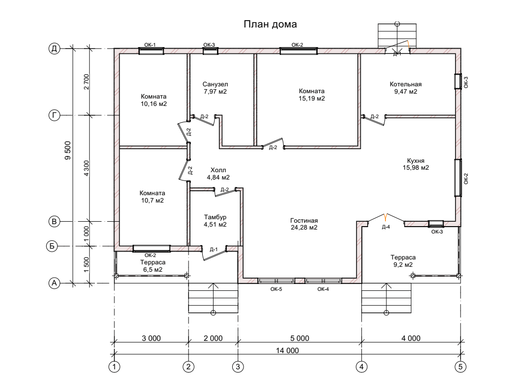 Построенный дом имеет следующую комплектацию: