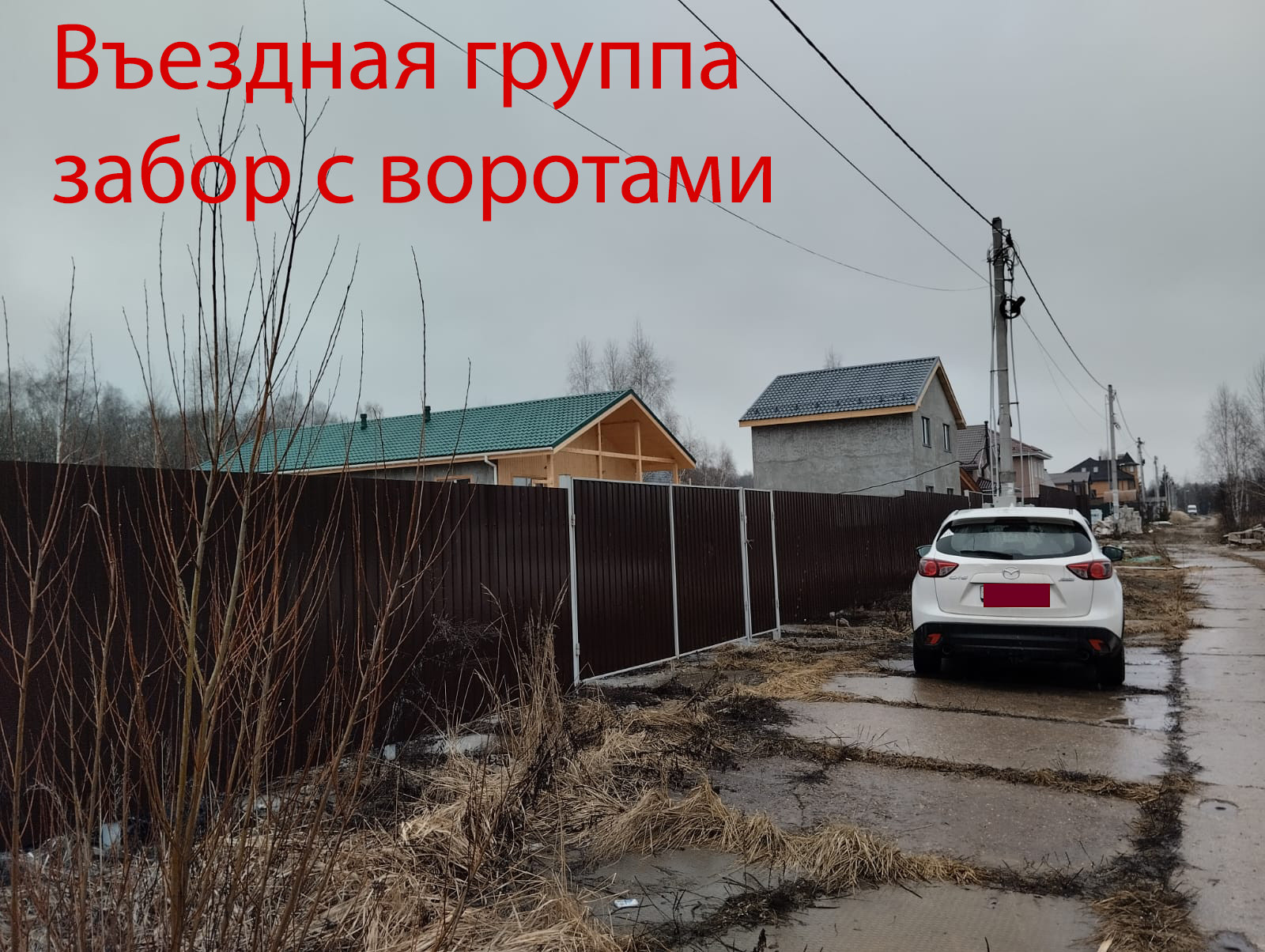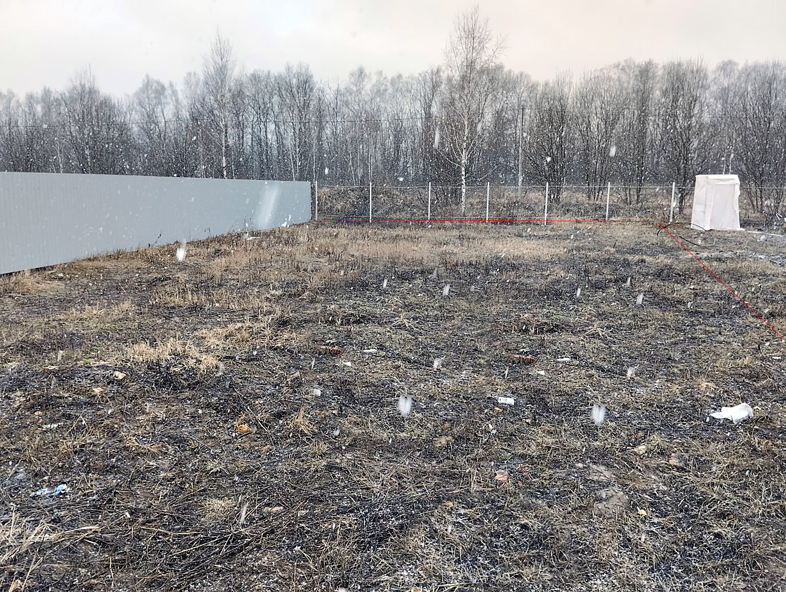 7.    Забор стоит с трех сторон, с соседом справа не ставили из соображений строительства,