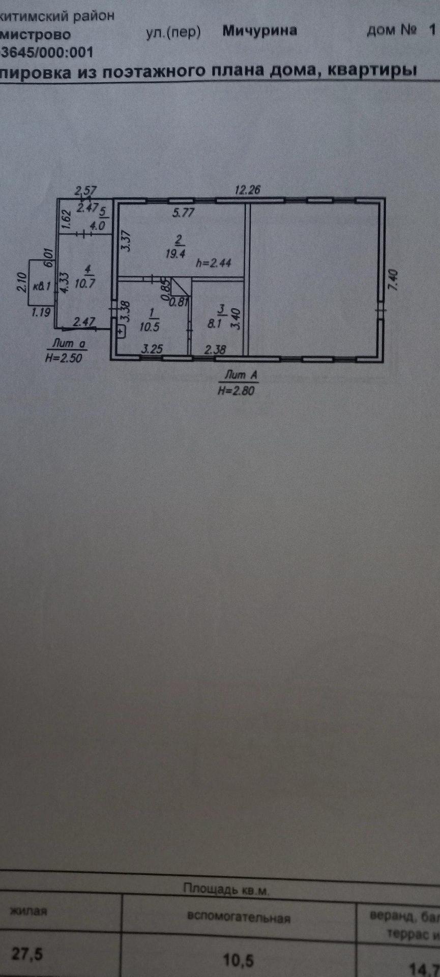2-комнатная квартира, 38 м2, этаж 1 / 1, на продажу в деревне Бурмистрово, улица Мичурина, 1
