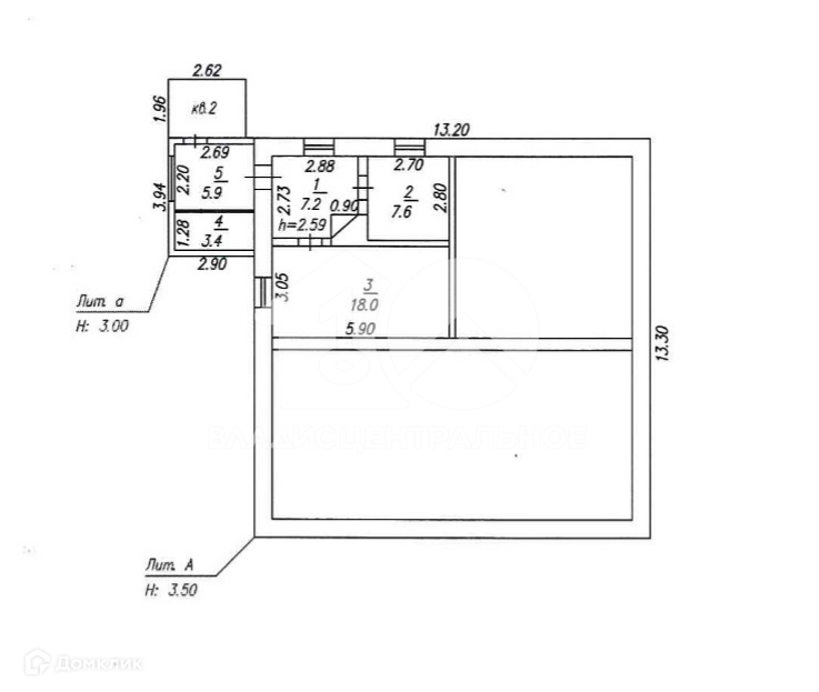 Общая площадь 32.8 м2