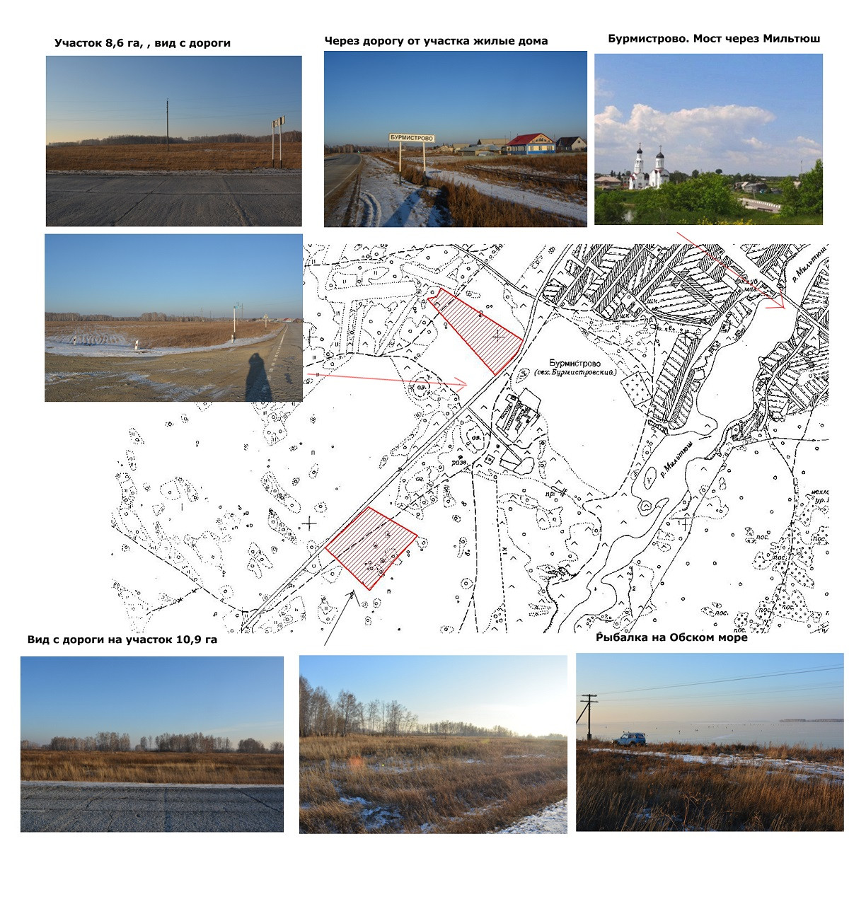 Рядом здесь же в Бурмистрово есть еще один участок, кадастровый 54:07:047403:1773, его цена 980 т.р. он через дорогу от первого - его площадь 10,2 га , (35 километровый столб).