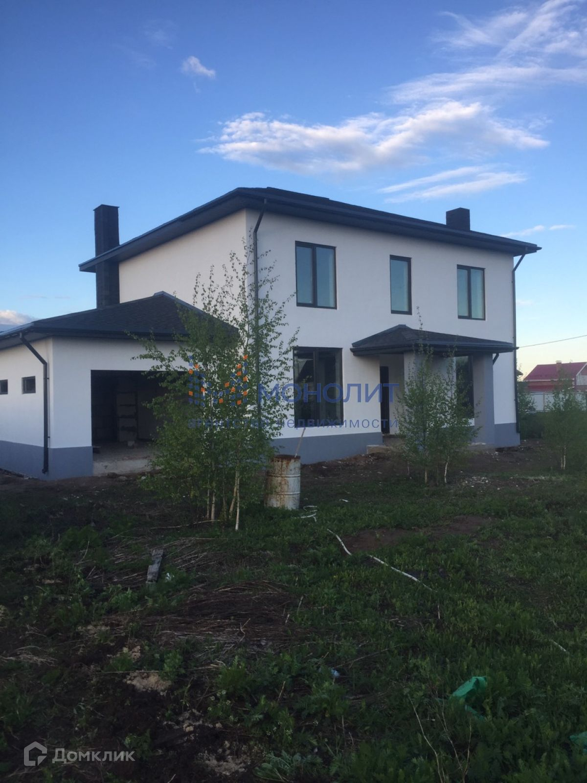 Фундамент буро-набивные сваи, плиты перекрытия ж/б, лестница бетон, евро-окна, фасад дома - декоративная штукатурка, цоколь с утеплителем 1 м от земли, отмостка, водоотлив/ливневка, кровля - мягкая черепица, крыша 4-х скатная, забор.
