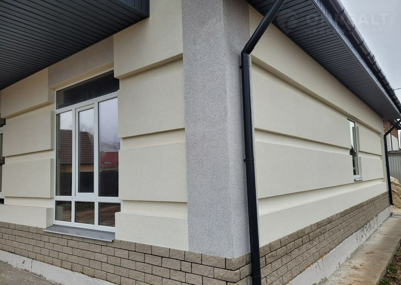 • Фасад полностью выполнен материалами и по технологии (включая финишное покрытие) Церезит, утепление вата. На углы нанесены мраморная крошка в смоле Сенерджи. Цоколь колотый кирпич.