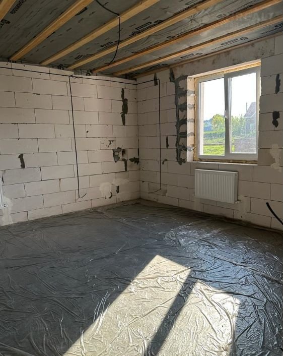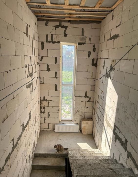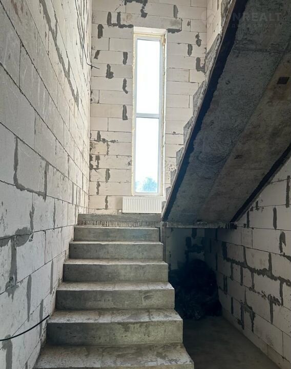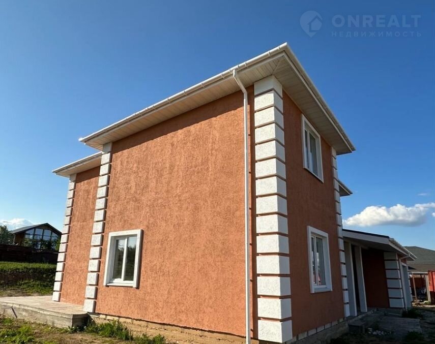 Кровля  Финская гибкая черепица (ТЕGОLА). Подшив кровли перфорация софиты, водосточная система (Dосkе). Немецкие окна все из качественного ПВХ (RЕНАU) с двухкамерными стеклопакетами 70мм. Парадные два окна первого и второго этажа + большое окно на лестничной площадке между первым и вторым этажами тонированные пленкой (Бронза). Стены и пол под чистовую отделку. Сделана разводка электрики и сантехники, (батареи) по всему дому.