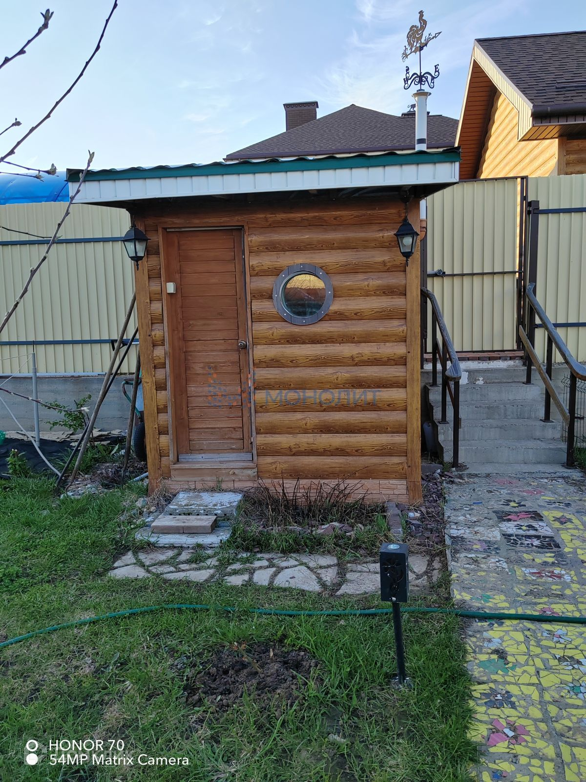 Навес на два авто,вторая парковка для авто, видеонаблюдение, крытая веранда с зоной барбекю (Финский гриль), горячая вода, две теплицы по 6 метров, отдельно стоящая мастерская, залита бетонная плита для бассейна, площадка для патио , домик для кур. Посажен плодово-ягодный сад.