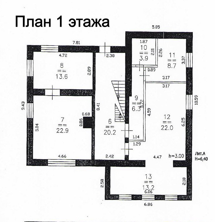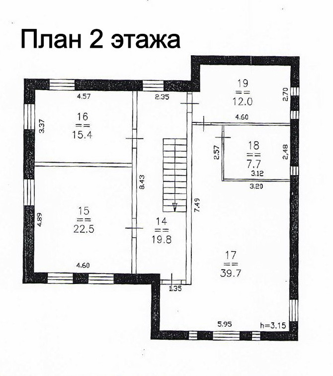 Высота потолков более 3-х метров (на первом этаже 3,6м), высокие дверные проёмы. Подробный план дома с размерами помещений представлен на фото.