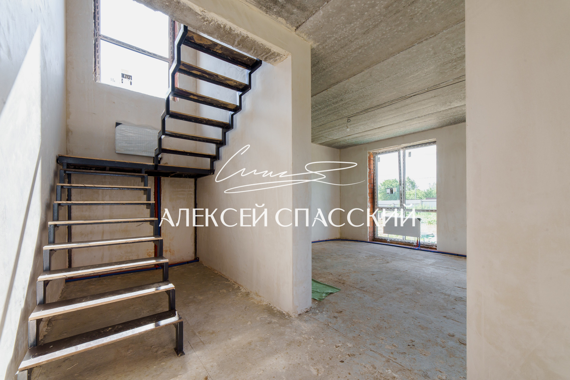 Входная дверь металлическая с терморазрывом фирмы "Бартон". Скрытая водосточная система. Штукатурка внутренних стен.