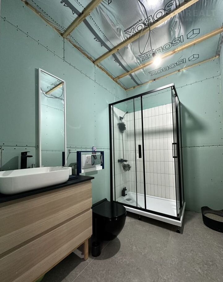 В сан/узле установлена вся сантехника: унитаз, душевая кабина и раковина., всё в рабочем состоянии.