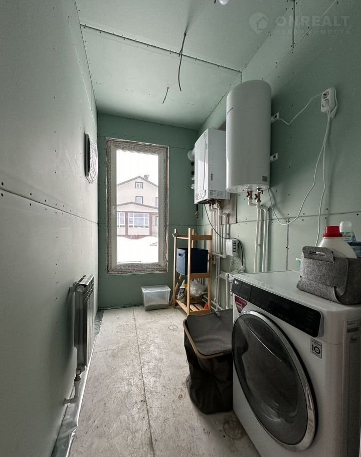 На кухне есть розетка под духовой шкаф и вывод для посудомоечной машины и раковины, в котельной установлена стиральная машинка.