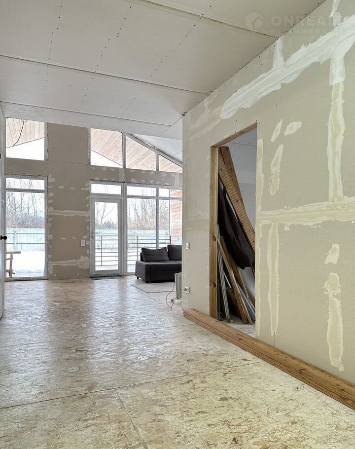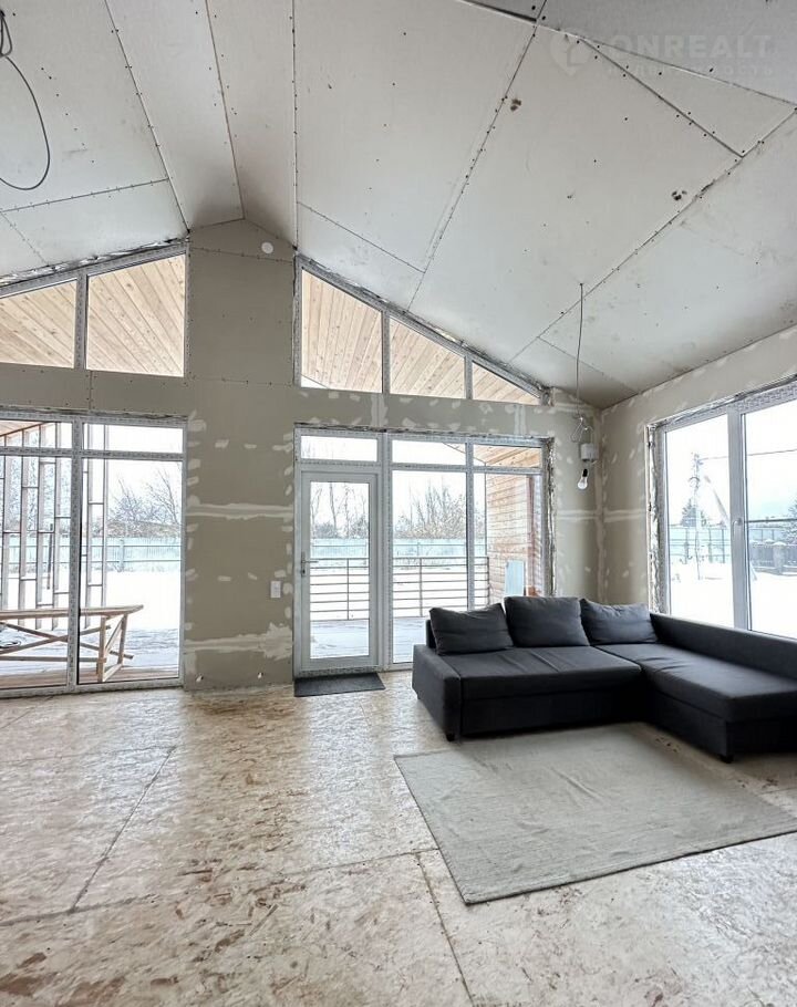 пол- деревянный, сверху панели ОSВ, везде потолки 3м, в гостиной высота 3-5 м , крыша и стены облицованы фальцевой кровлей высшего класса, пол на веранде покрыт лиственницей.