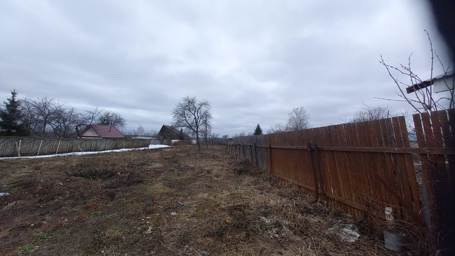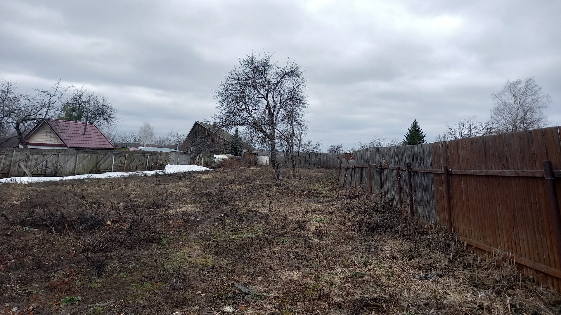 Участок ровный прямоугольный, без перепадов высоты. Яблони, вишня, слива. Рядом пруд.