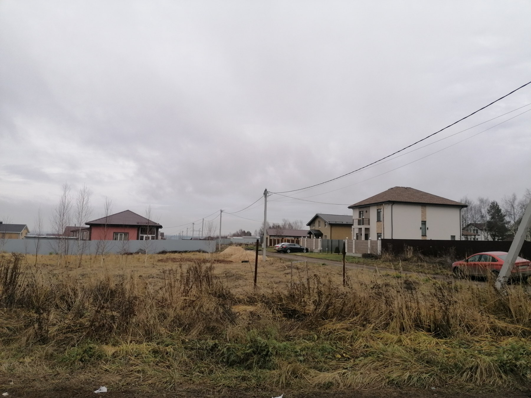 На территории деревни есть аптека, магазины пятёрочка, ozon и wildberries, начали строить ТЦ. При въезде в деревню работающий садик. Курсируют школьные автобусы. Улицы очищают от снега. Сам участок ровный, не имеет уклона, ям и холмов, по двум сторонам имеется 3 метровый отступ от дороги, где можно организовать парковку. В 10 минутах ходьбы располагаются 2 озера с песочным пляжем.