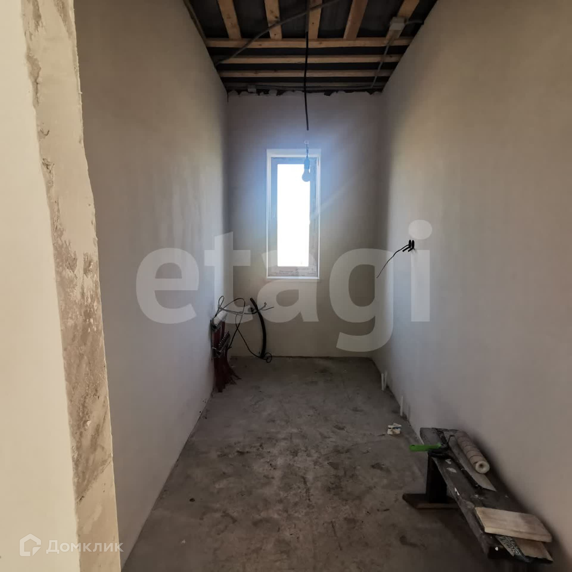 стены оштукатурены и ошпаклеваны под обои, полы стяжка, электроразводка, отопление, водоснабжение, натяжной потолок.