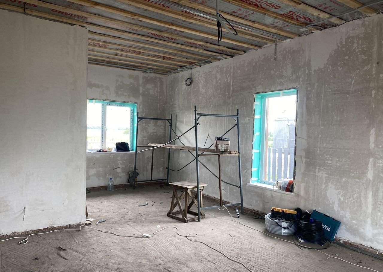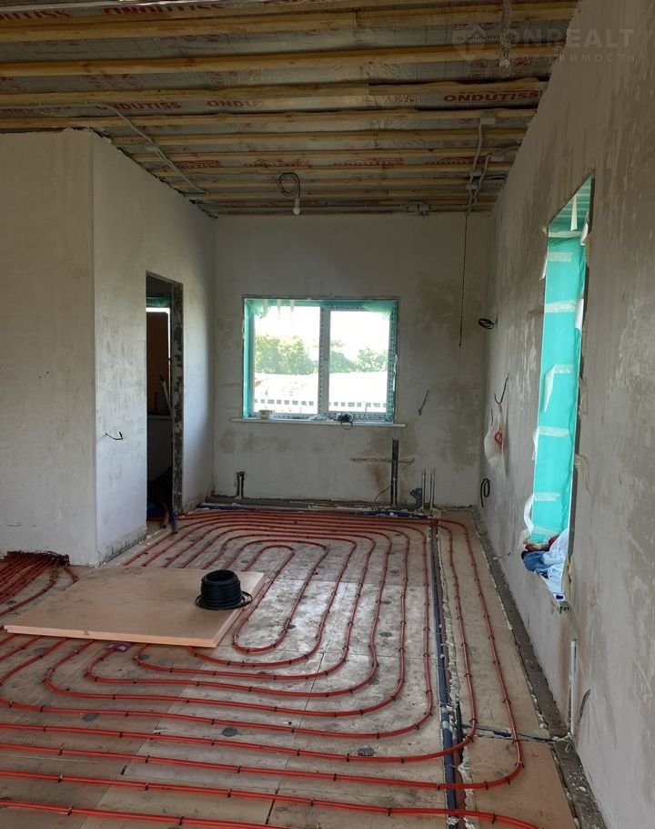 Предчистовая отделка: стены выровнены и оштукатурены, ровная стяжка Пола, система теплый пол по всей площади, установлены радиаторы, качественные стеклопакеты, хорошая входная дверь с теплоразрывом.