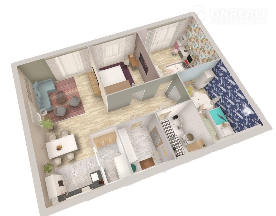 Жилая площадь 56,7 кв.м.