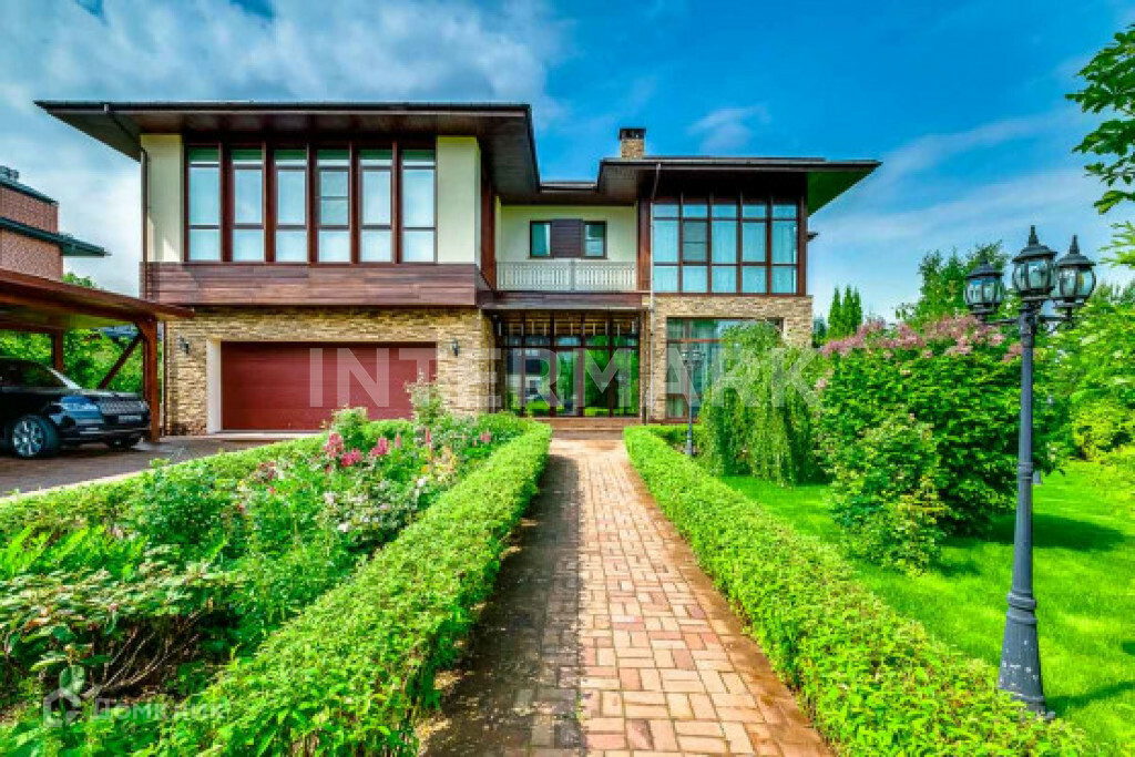 Лот 5924. Променад. Дом полностью готов к проживанию. Предлагаем купить дом в коттеджном поселке Променад. КП расположен на Киевском шоссе в 12 км от МКАД. Площадь дома 611 кв.м. В доме выполнена отделка под ключ. Планировкой предусмотрено 2 этажа, 3 спальни. Планировка дома: 1 уровень - гараж, гостиная, кабинет, кладовая, котельная, кухня, прихожая, санузел, столовая, холл; 2 уровень - балкон, постирочная, спальня, спальня с гардеробной и санузлом - 2 шт., холл. Дом расположен на участке общей площадью 27 соток. Территория благоустроена:  есть газон, ландшафтный дизайн. Помимо основного дома на участке расположены: беседка для барбекю, банный комплекс, дровяная баня из кедра - 92,7 кв.м. и беседка с bbq - 28,9 кв.м. В КП Променад современные инженерные коммуникации: газоснабжение - магистральное, подведено электричество, водоснабжение - централизованное, канализация - центральная. Планировка объекта предусматривает гараж в контуре дома. В коттеджном поселке круглосуточная охрана.