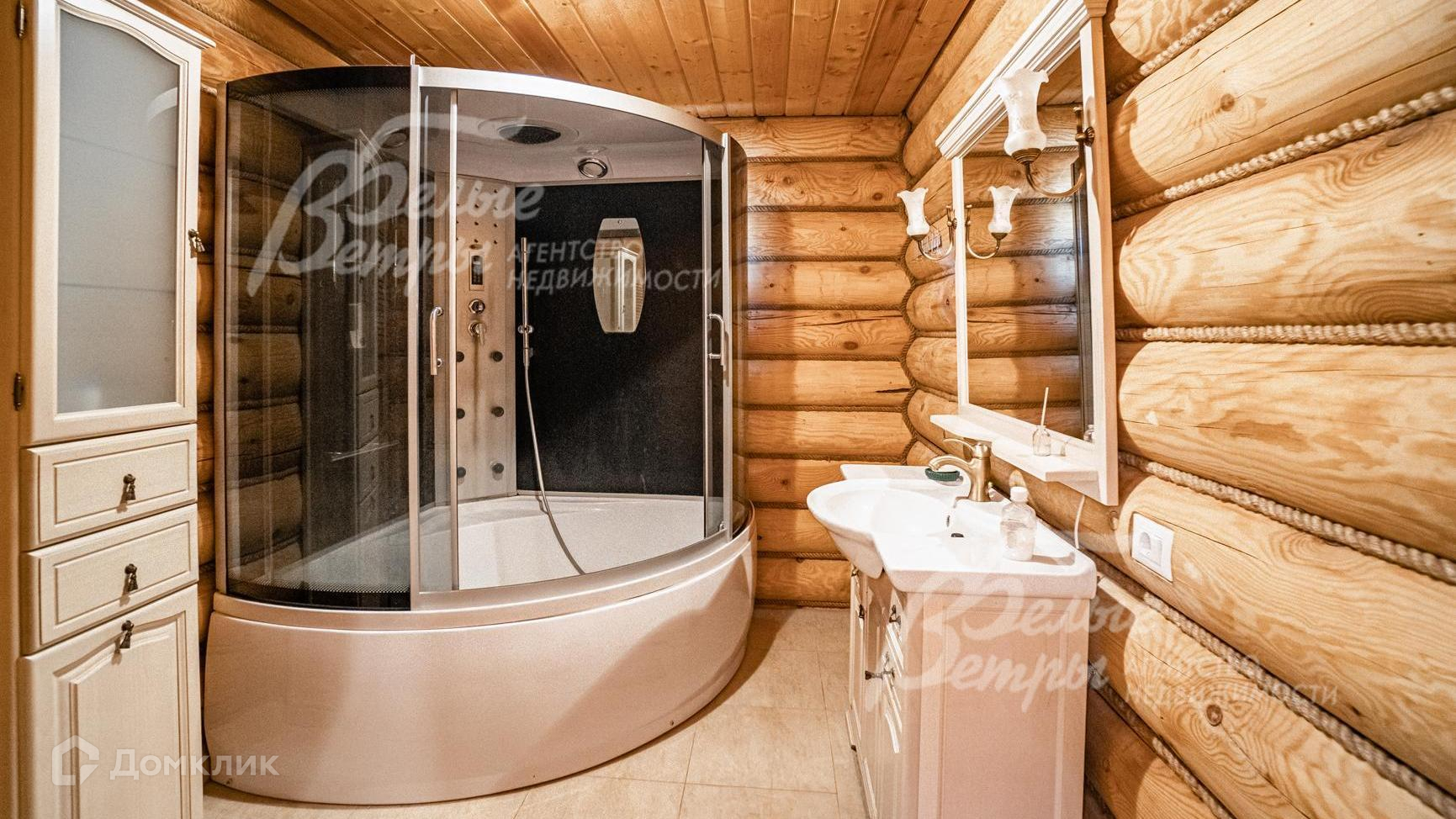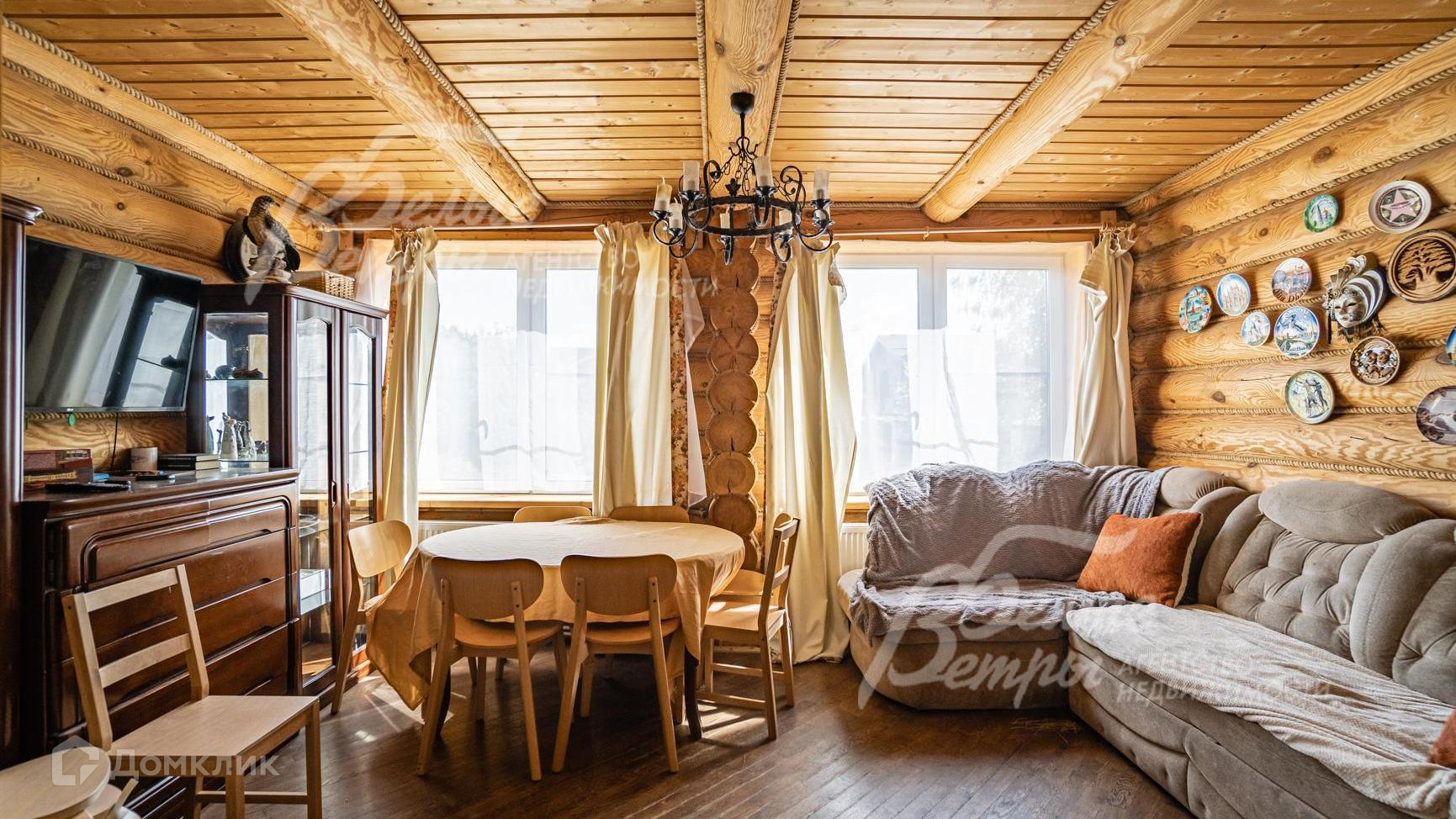 Внутренняя отделка: в отделке преобладает дерево: стены из обработанного бревна; на полах - ламинат, в санузлах - плитка. Потолки отделаны деревянной вагонкой. Лестничный марш деревянный (лиственница) шириной 0.9 м. Двери деревянные филенчатые. Подоконники деревянные..
