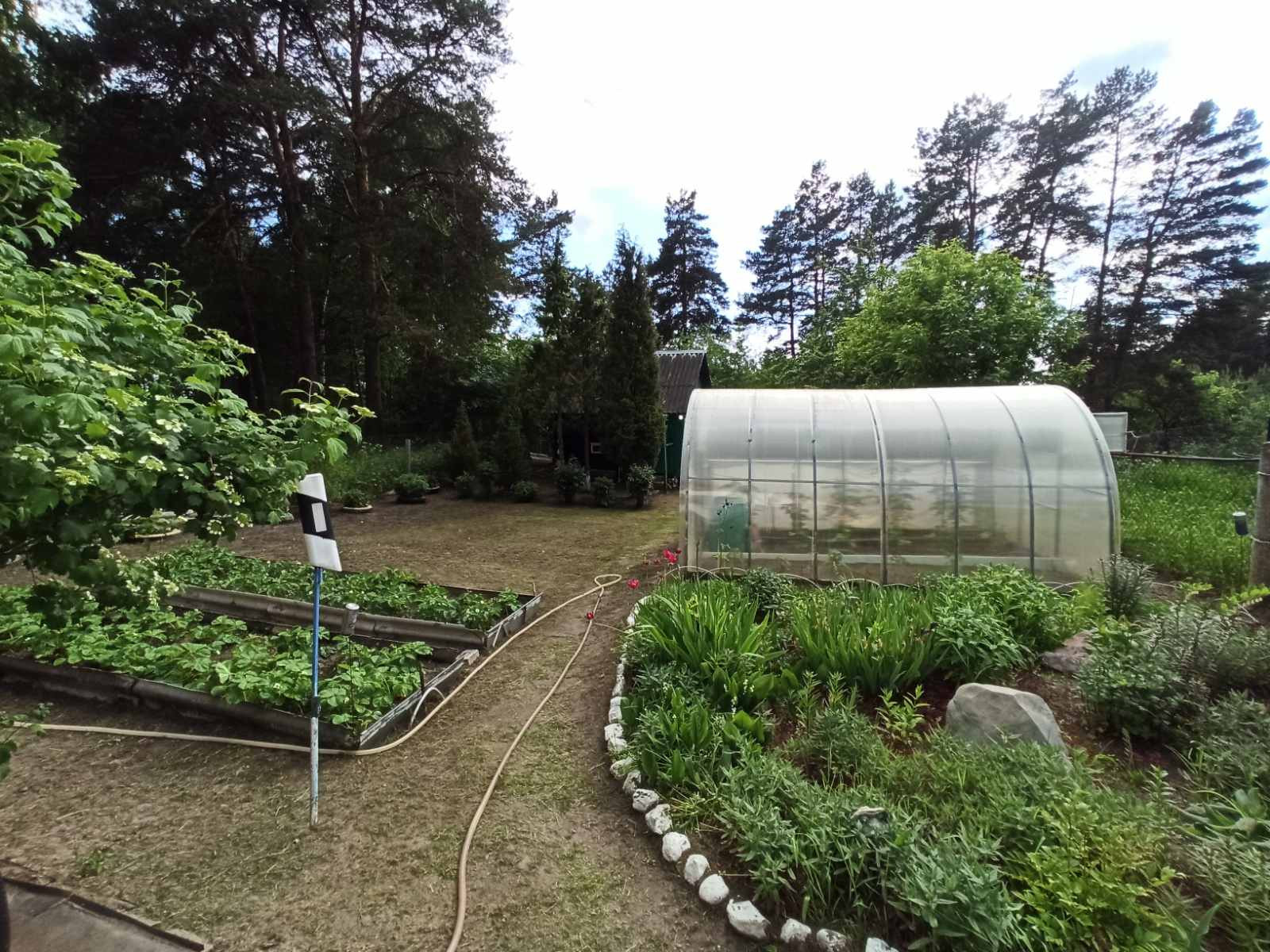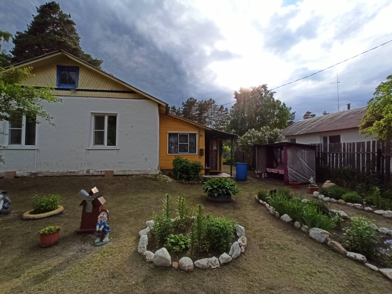 Участок ухожен и благоустроен. Есть банька и беседка с зоной для барбекю. Так же есть теплица, грядки, плодово-ягодные насаждения. При желании участок можно увеличить. Имеется железобетонный гараж.