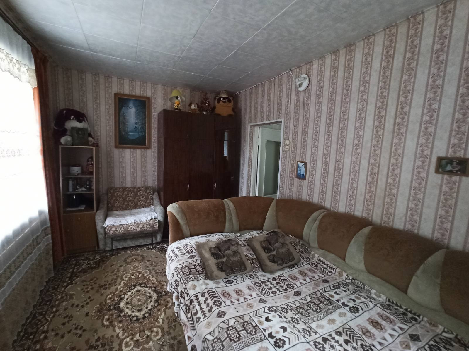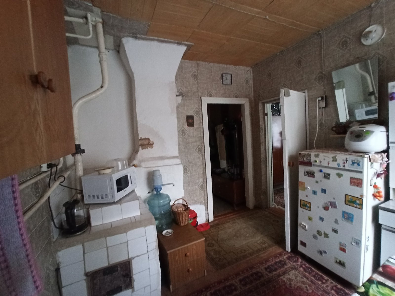 Дом состоит из  3-х  изолированных комнат по 13,6; 13,5 и 11.4 кв.м., большой кухни 9 кв.м., коридора, дополнительной и удобной кладовой, туалета.  Есть скважина с переходником в дом, в баню и для полива.  В доме печное отопление с расширительным бочком, в каждой комнате батареи с тосолом. Дом прогревается быстро. В 2024 году планируется газификация деревни.