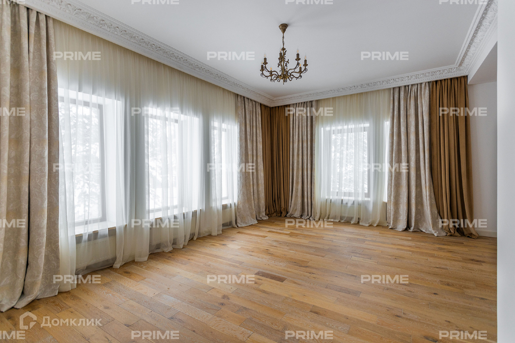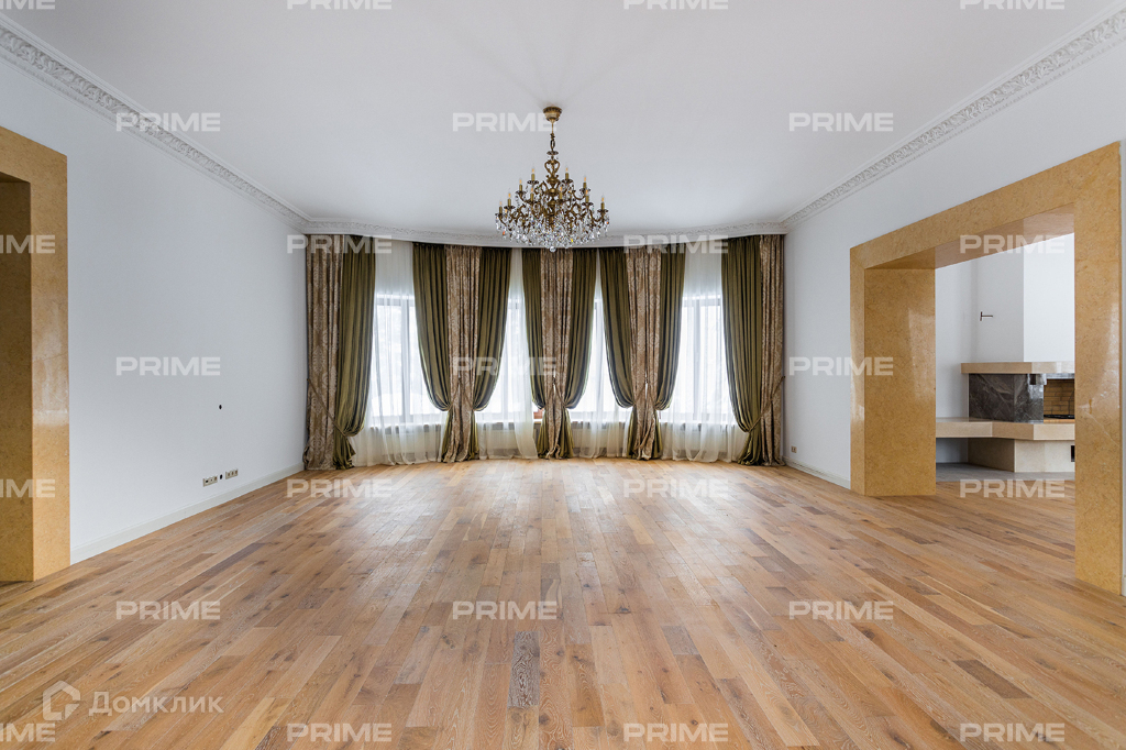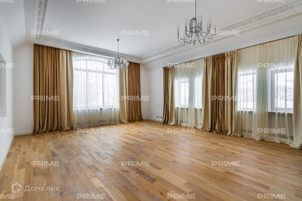 На территории престижного коттеджного поселка «Азарово», расположенного всего в 23 км от МКАД по Рублево-Успенскому шоссе, находится стильное домовладение площадью 602 кв. м. Дом возведен на просторном участке размером 27 соток.