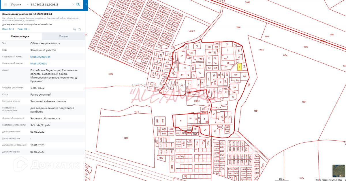Участок в собственности, отмежеван, границы стоят. Более того есть возможность увеличить площадь выкупив у администрации по кадастровой стоимости дополнительно 5-7 соток.