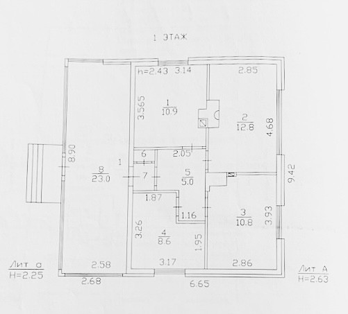 - кухня 10.8 кв.м., три изолированных комнаты 8.6 кв.м., 10.9 кв.м., 12.8 кв.м., просторная веранда 23 кв.м., коридор 1.1 кв.м., кладовая 0.5 кв.м., прихожая 5.0 кв.м.