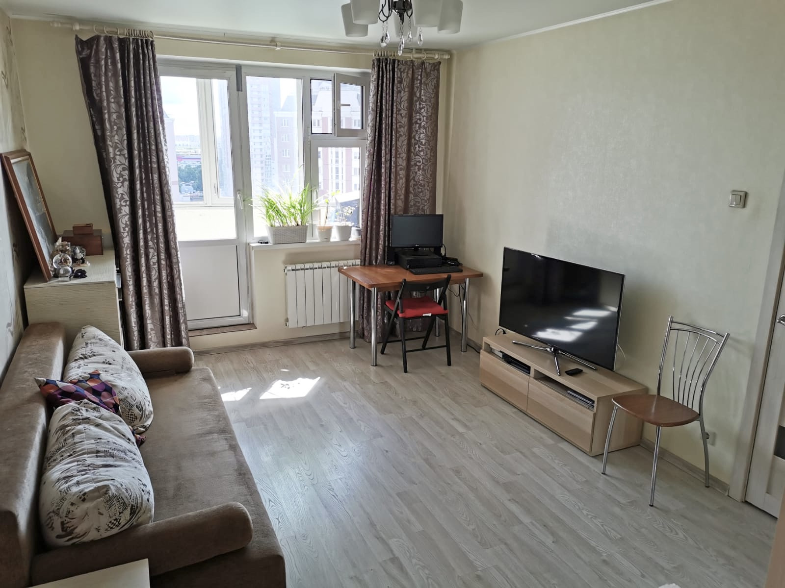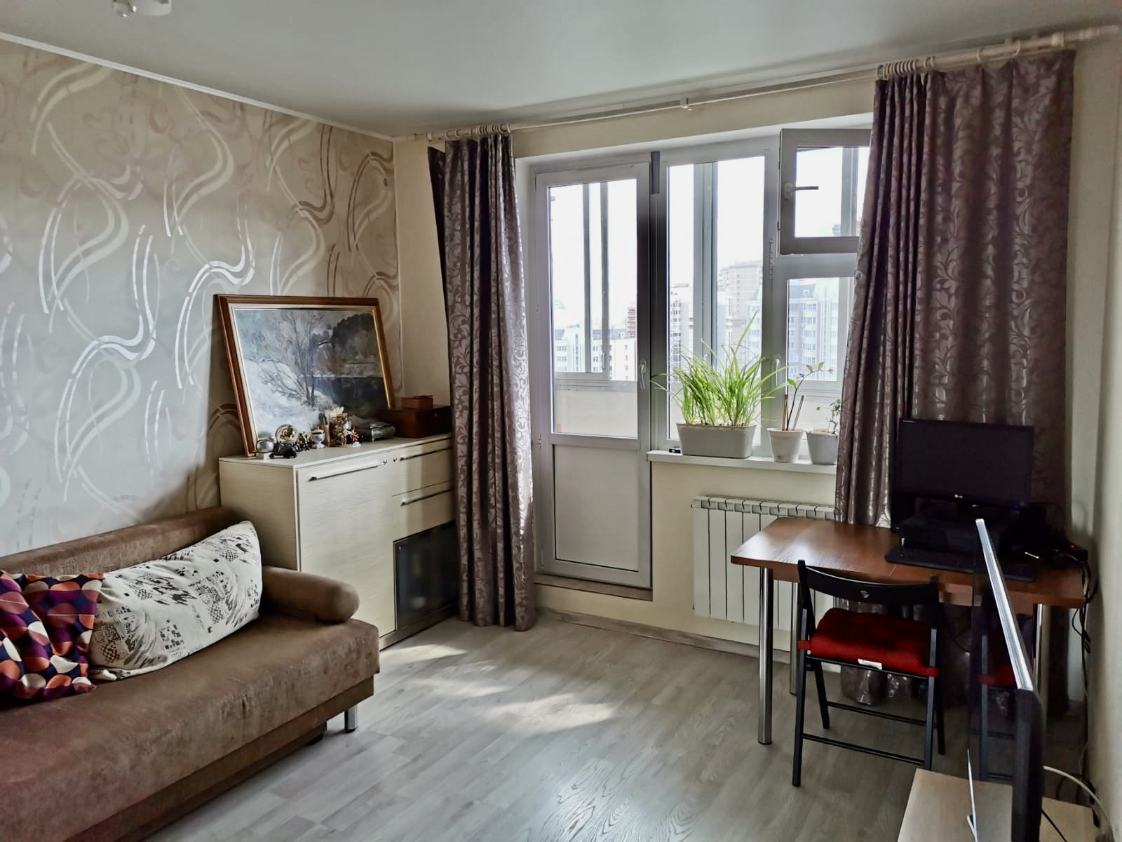 16 этаж 21 этажного монолитного дома. о/п 39,6 комната 19, кухня 9,2 м.кв. с\у совмещен, лоджия застеклена. Прекрасное состояние, современный ремонт. Чистый подъезд, прекрасные соседи, консьерж.