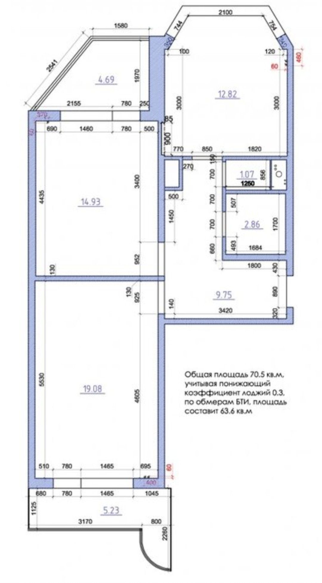 Общая площадь 65 м2