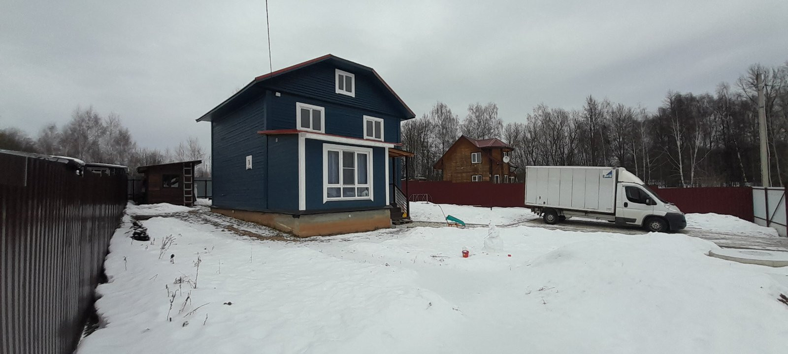 Первый этаж - прихожая, просторная кухня-гостиная 30кв.м, с/у, комната, бойлерная, тёплая веранда. Второй этаж свободная планировка.