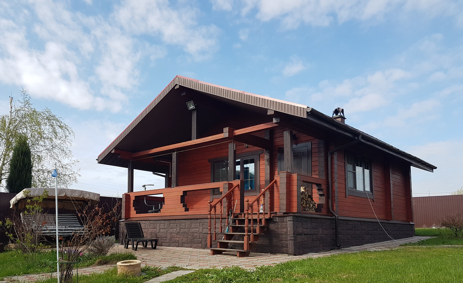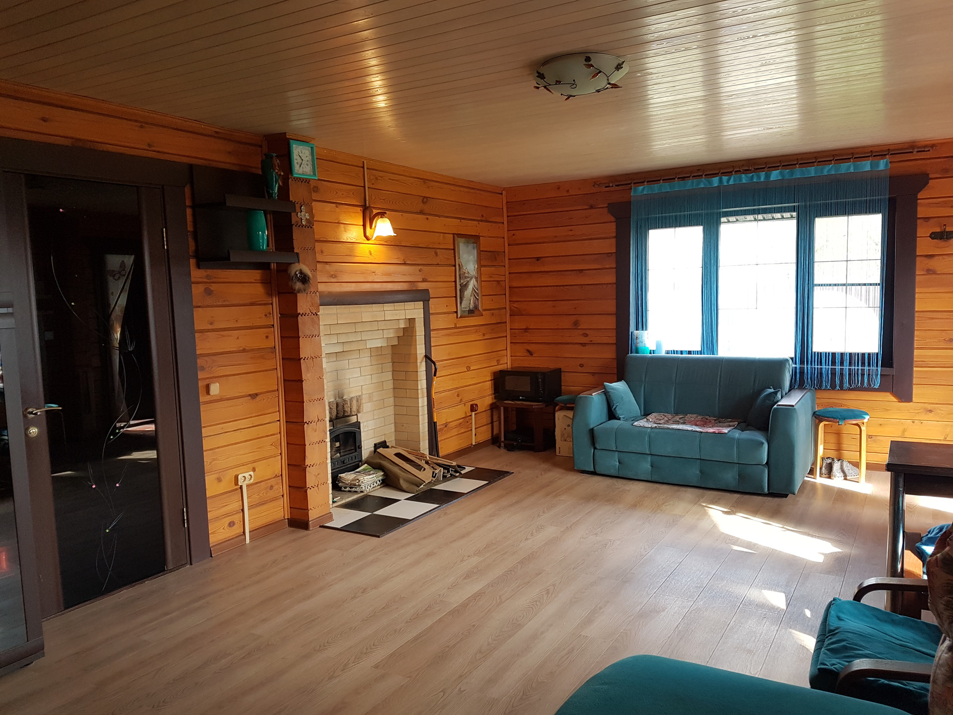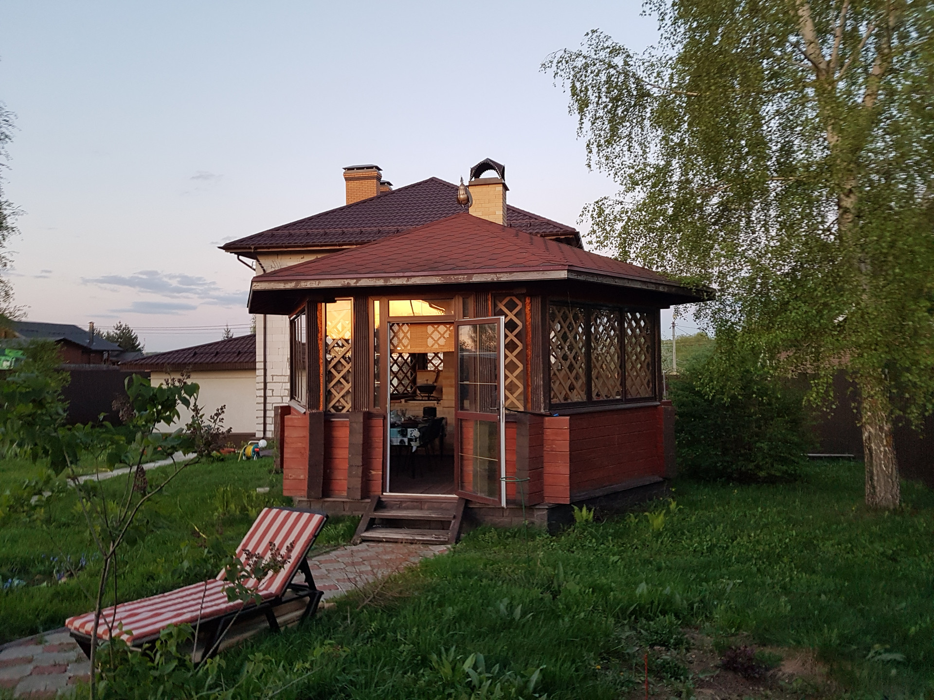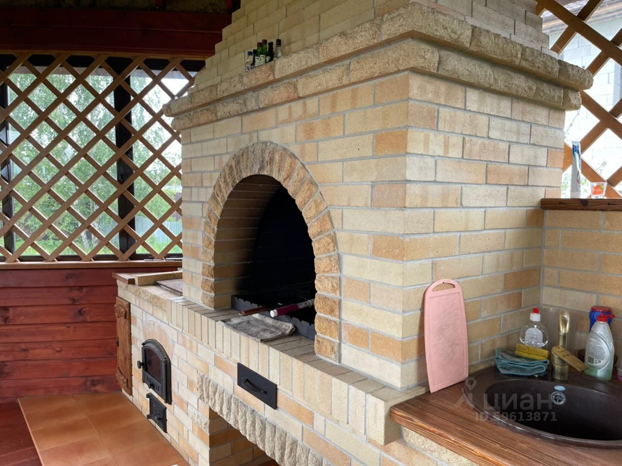- Утепленная беседка из бруса с печью из шамотного кирпича (мангал, печь для казана), мойкой, эл. варочной панелью, мебелью из дерева на заказ и полами из лиственницы.
