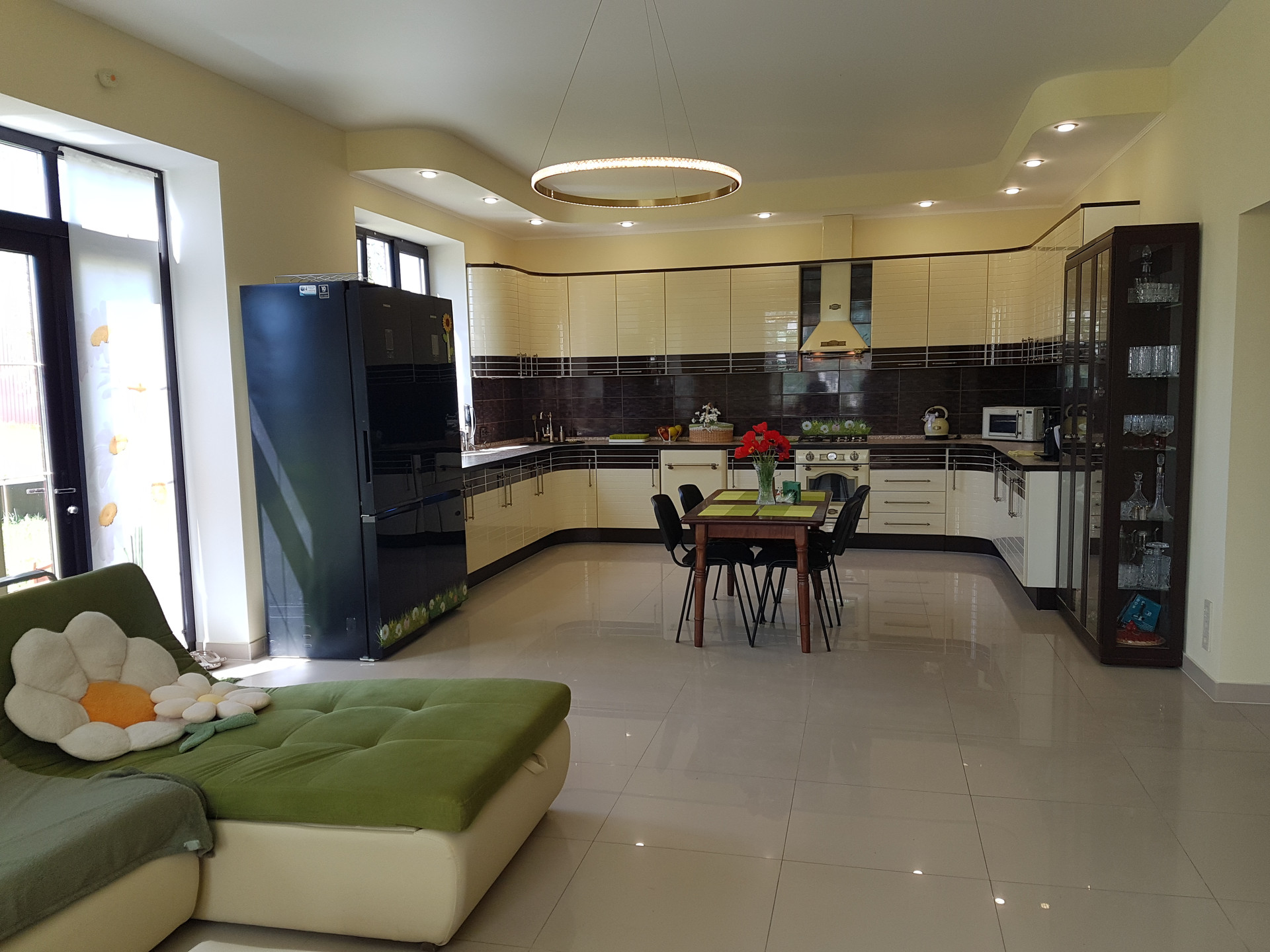 1 этаж (высота потолков 3,05м) с качественной отделкой: кухня-гостиная 48м (кухня Бостон, встроенная кух.техника Каisеr, холодильники Sаmsung), спальня 21м, с/у 5,5м (сантехническое оборудование Gарро), прихожая 8м, холл 16м с бетонной лестницей на 2-й этаж, бойлерная 7,5м (газовый котел Вахi, бойлер Stоut), отапливаемый гараж на две машины 52,5м (автоматические ворота Ноrmаnn, снегоуборщик Нyundаi, мойка высокого давления Каrсhеr), крыльцо 8,5м.