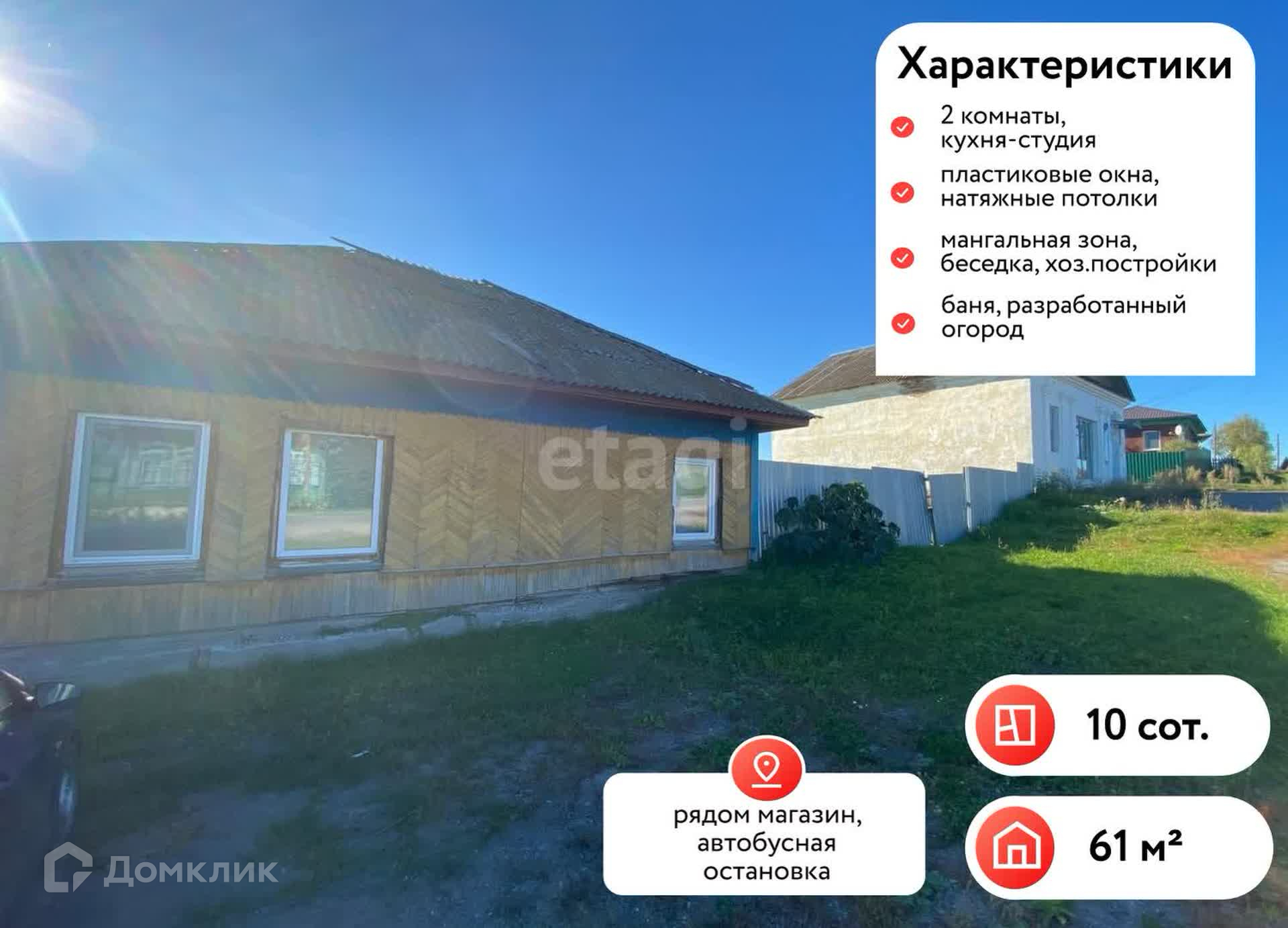 1-этажный дом, 61.6 м2, на продажу в деревне Бутырки, Советская улица