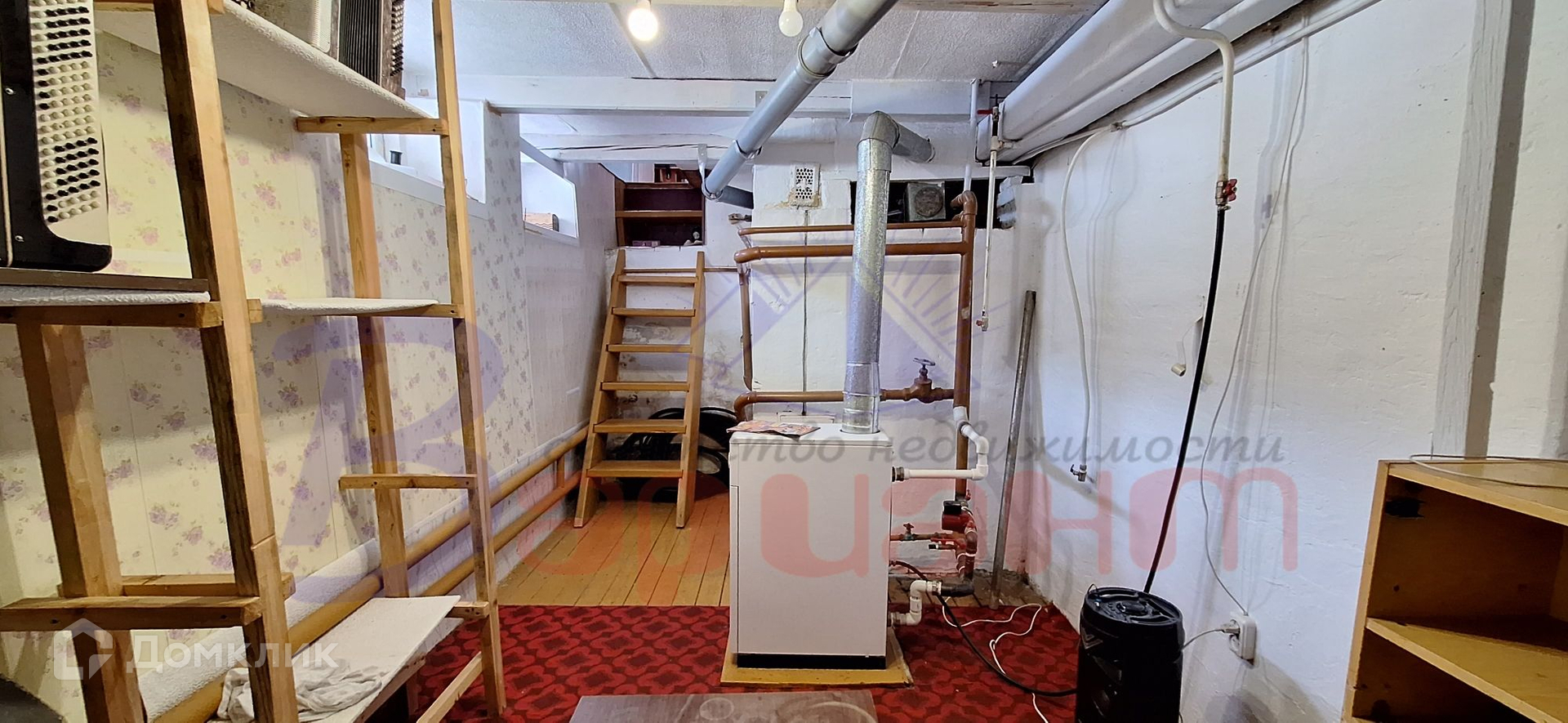 Отопление газовое и печное, расположены в подвальном помещении.