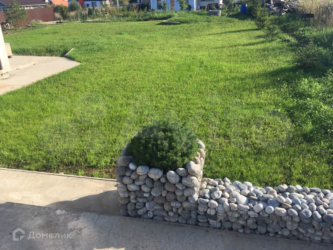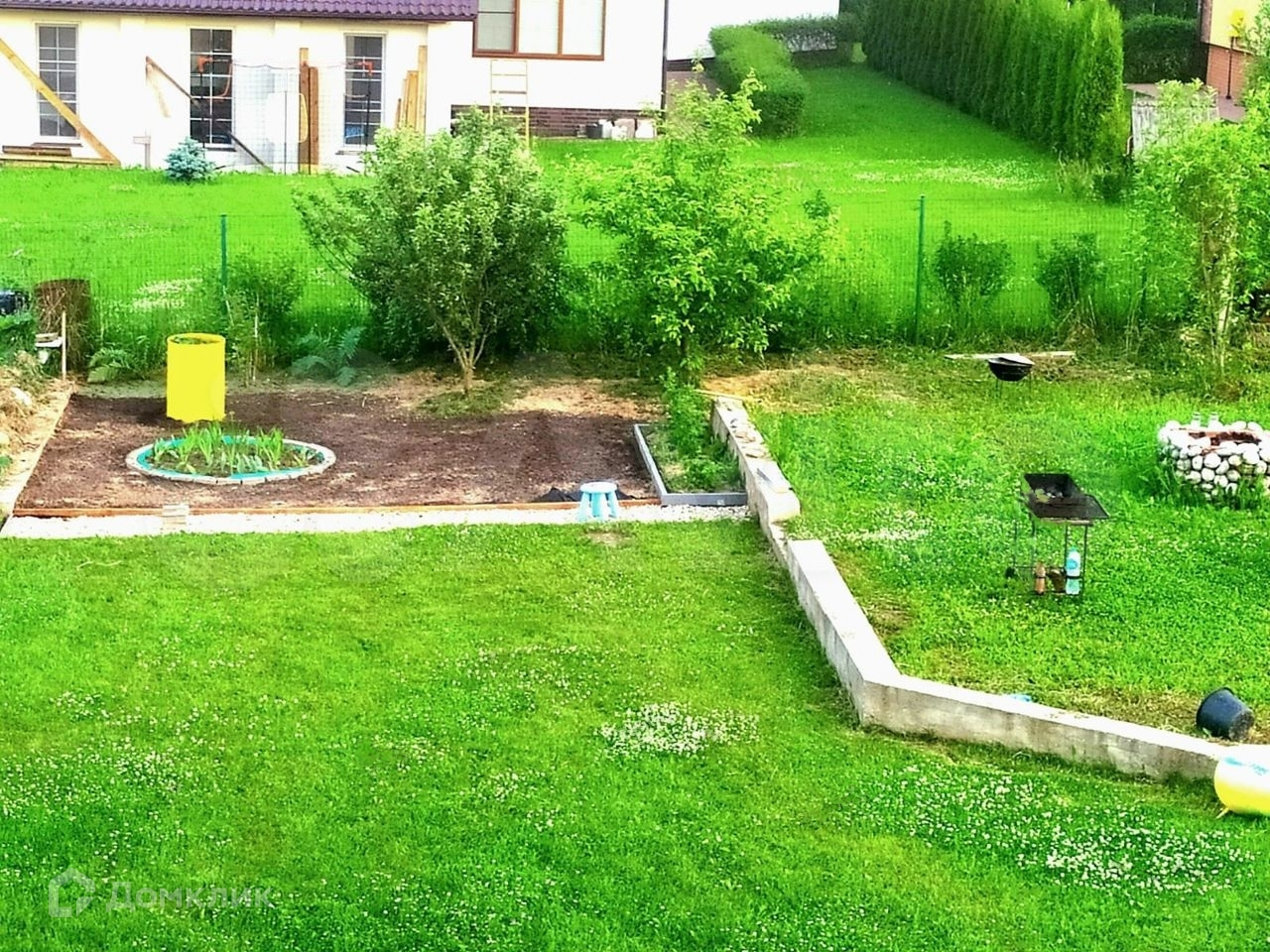 4. Участок выровнен, проложен дренаж, засеян газоном. Есть мангальная зона и очаг-костровище, где можно посидеть у огня.