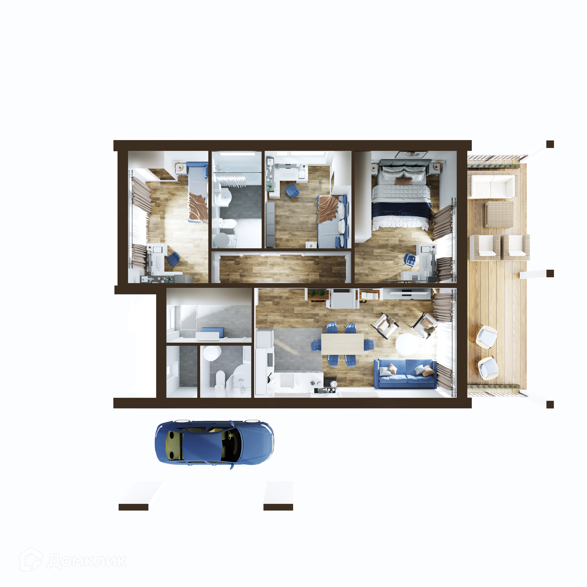 Дом находится в стадии строительства, в качестве визуализации добавлен 3Д проект.