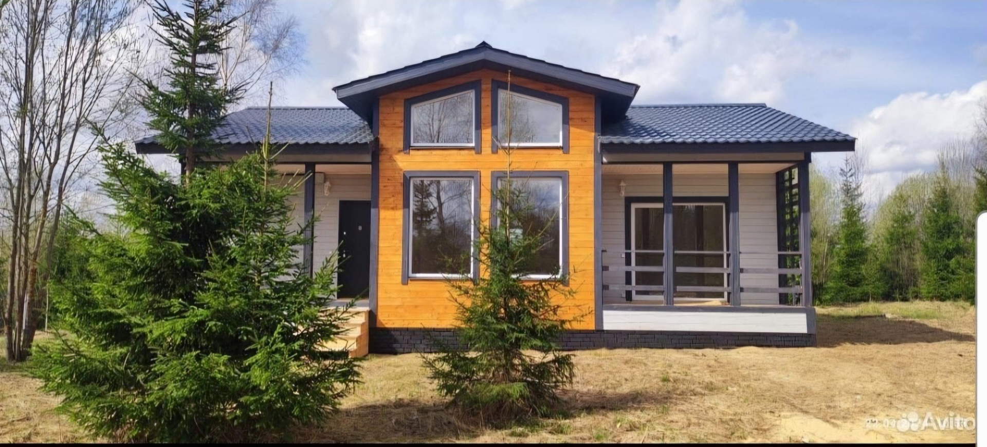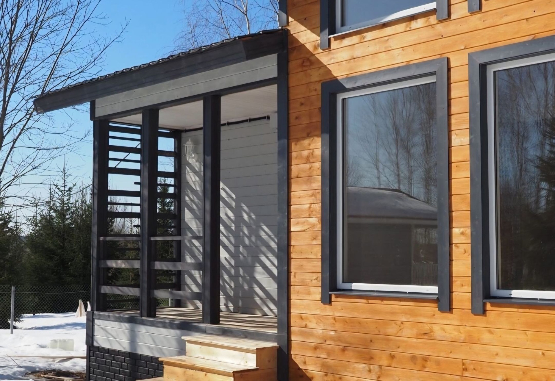 Дом поставлен ровно по сторонам света. Панорамные окна на восток.