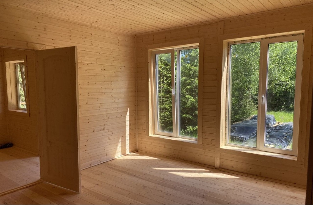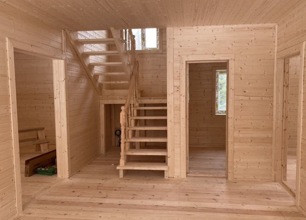 Дом построен по каркасной технологии. Утепление зима 200 мм весь контур, включая пол второго этажа. Каркас обработан антисептиком. Крыша металочерепица. Окна пвх двухкамерные. Отделка имитация бруса.