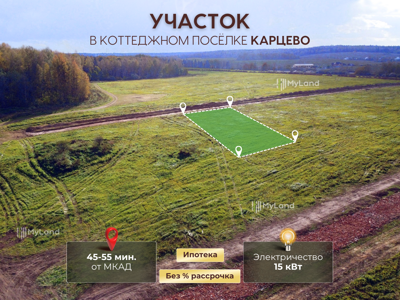 Инфраструктура: Всего в 7 км находится поселок Бужарово с развитой инфраструктурой: детский сад, школа и медицинское учреждение — все необходимое для полноценной жизни ваших близких.