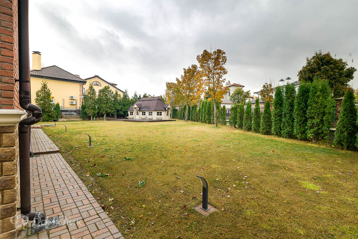 Предлагается полностью готовый к проживанию дом с мебелью и техникой площадью 593 кв.м. в поселке Рубин Эстейт, с 5 спальнями. В отделке использовались натуральные современные материалы высокого качества, кухонная техника Neff, сантехника Geberit, телевизоры Sony в каждой спальне. Участок 19 соток правильной прямоугольной формы, ровный, озелененный (газон, туи), подведено ночное освещение. Домовладение примыкает к парковой зоне с декоративным прудом. На участке расположены отапливаемый гараж с помещениями для персонала на втором этаже и беседка с мангалом.