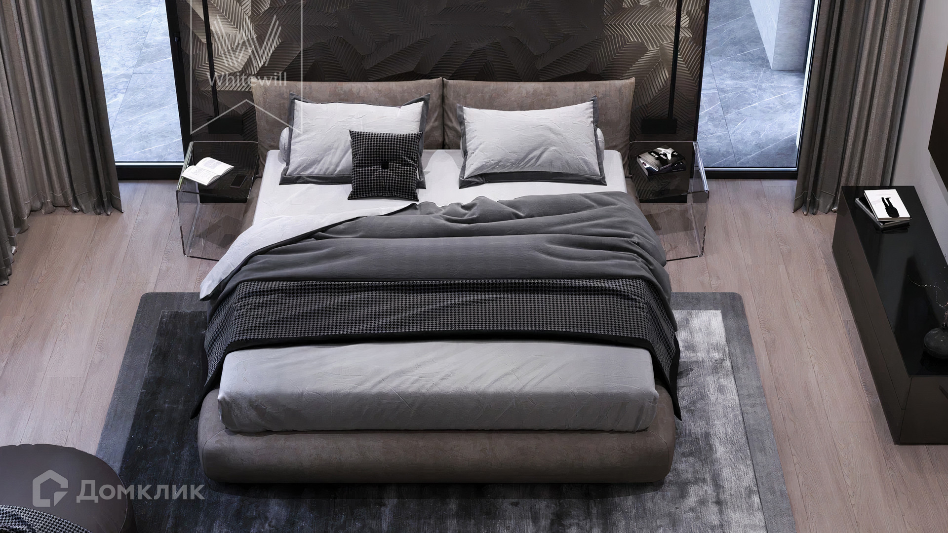 2-й уровень: кабинет, 2 спальни с санузлами, терасса, спальня с санузлом и гардеробной.